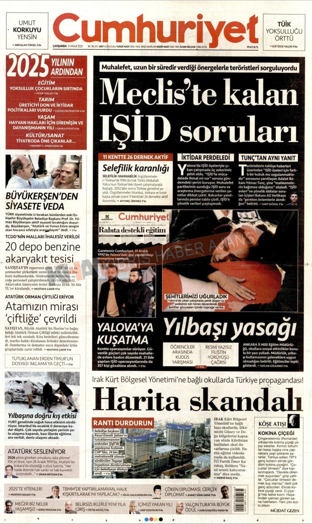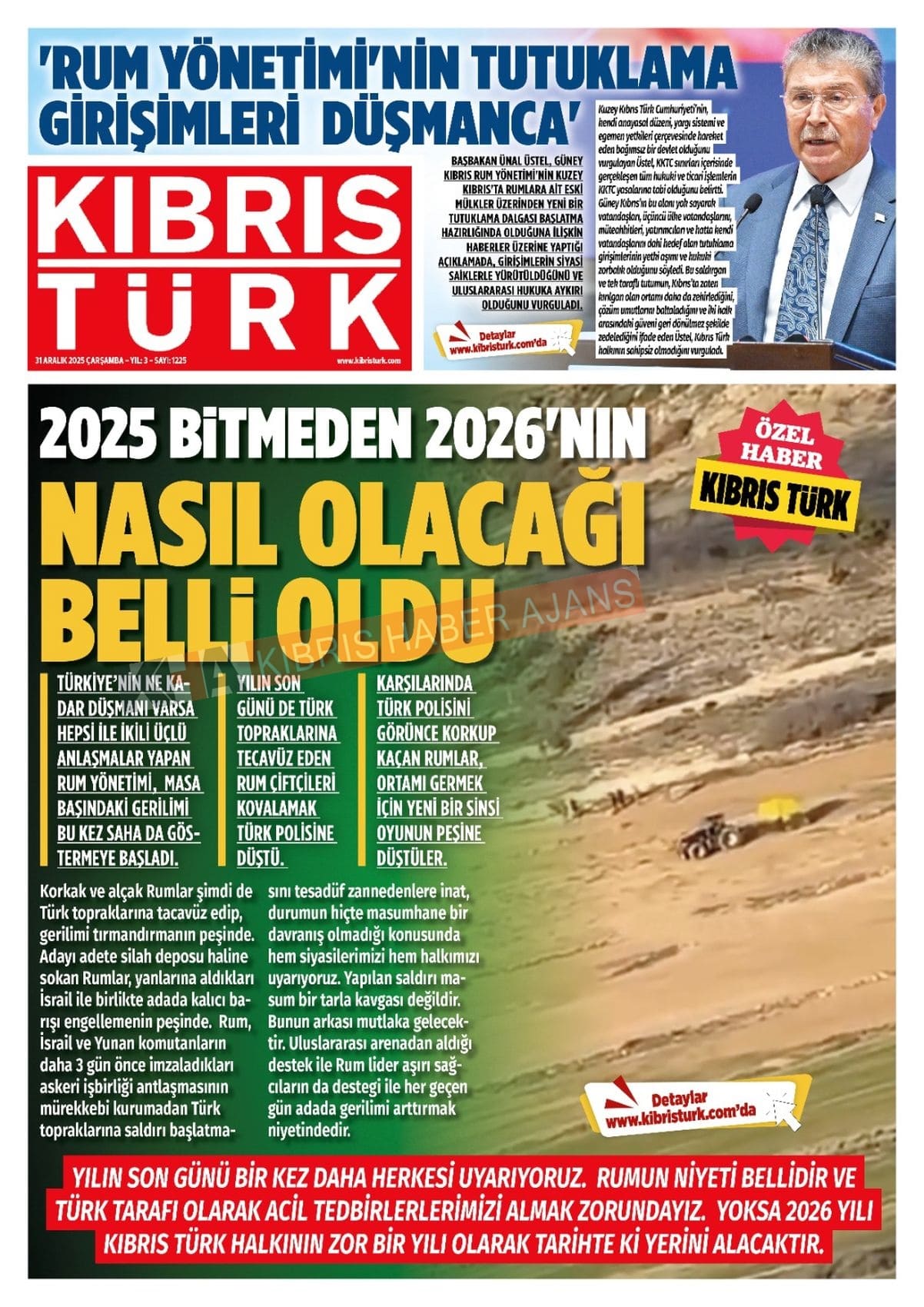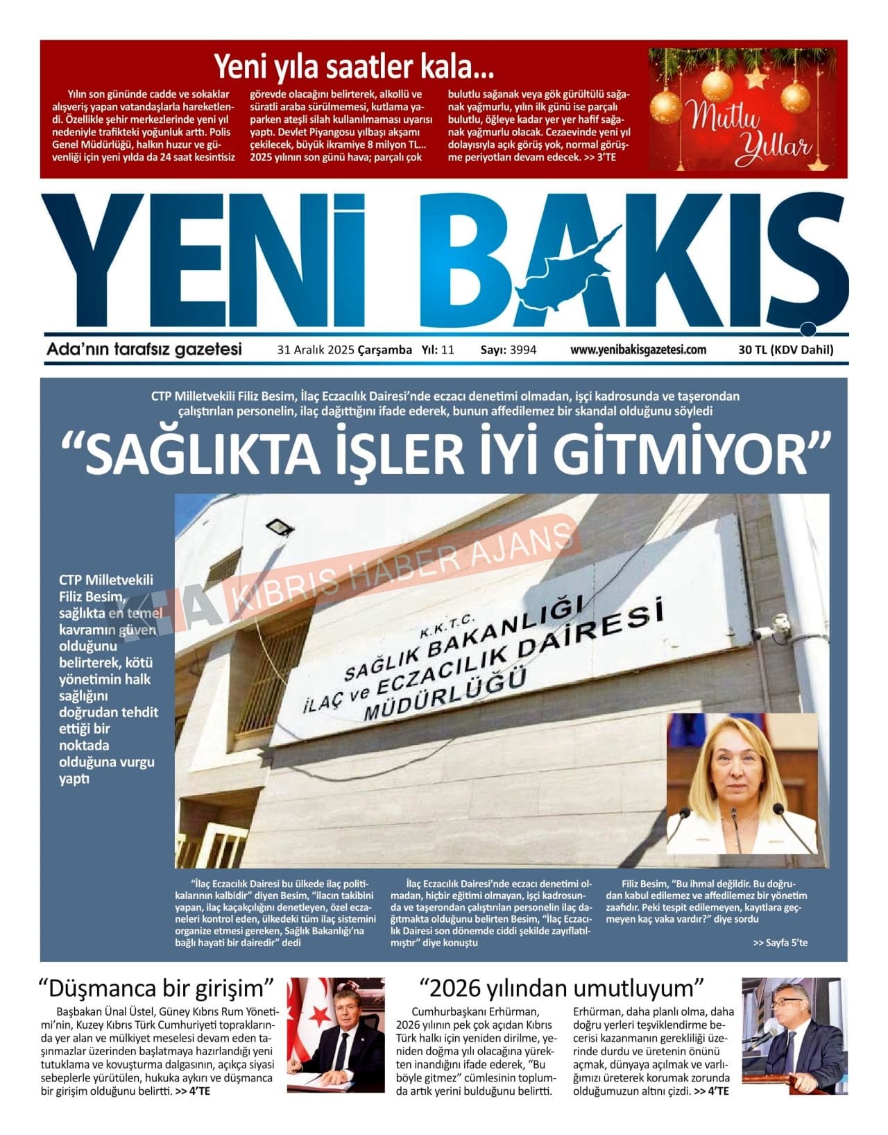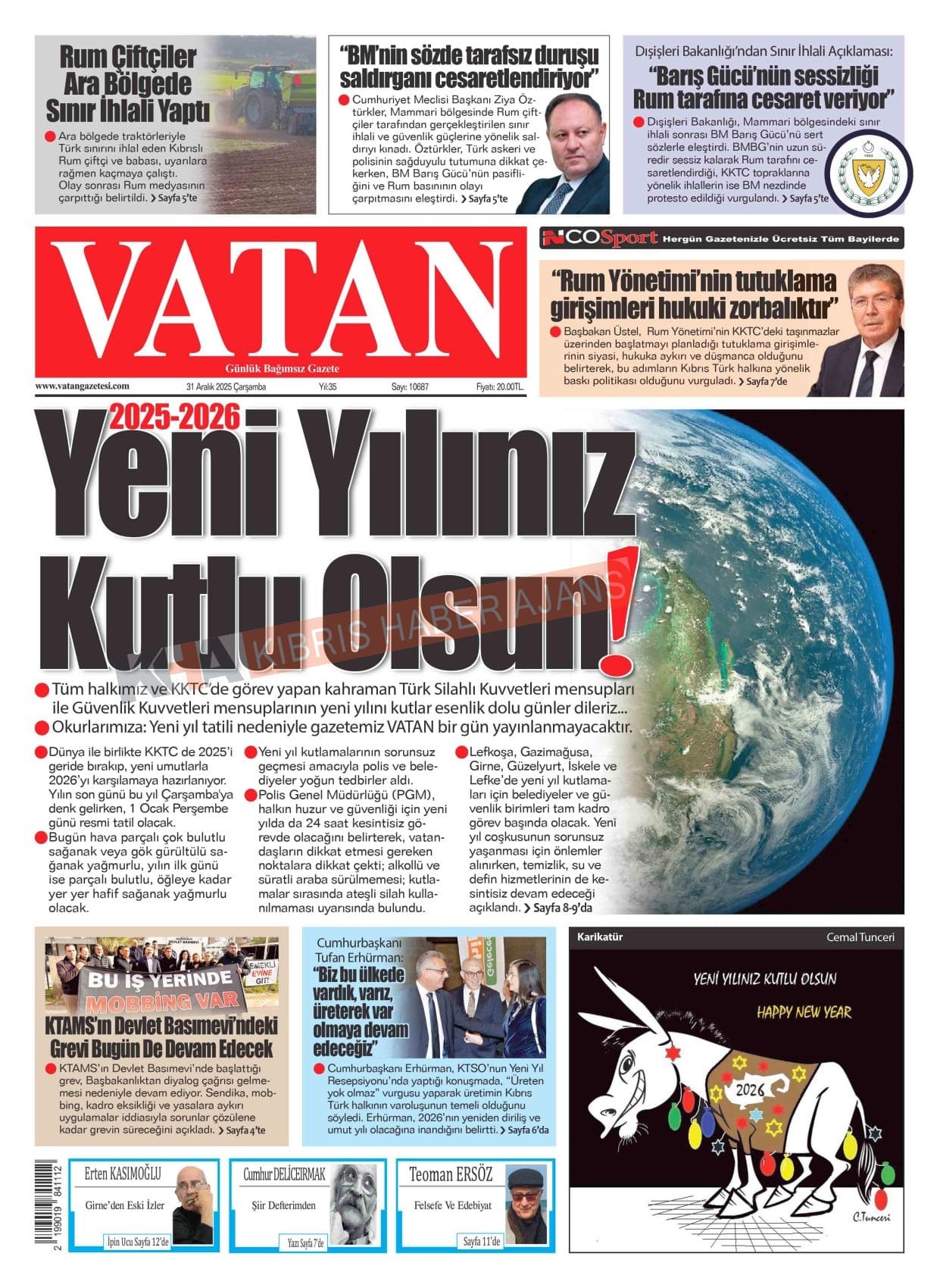 3. KKTC-TC Gazetelerinde Bugün (31 Aralık 2025)