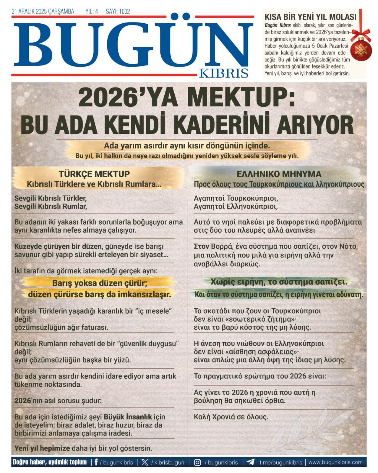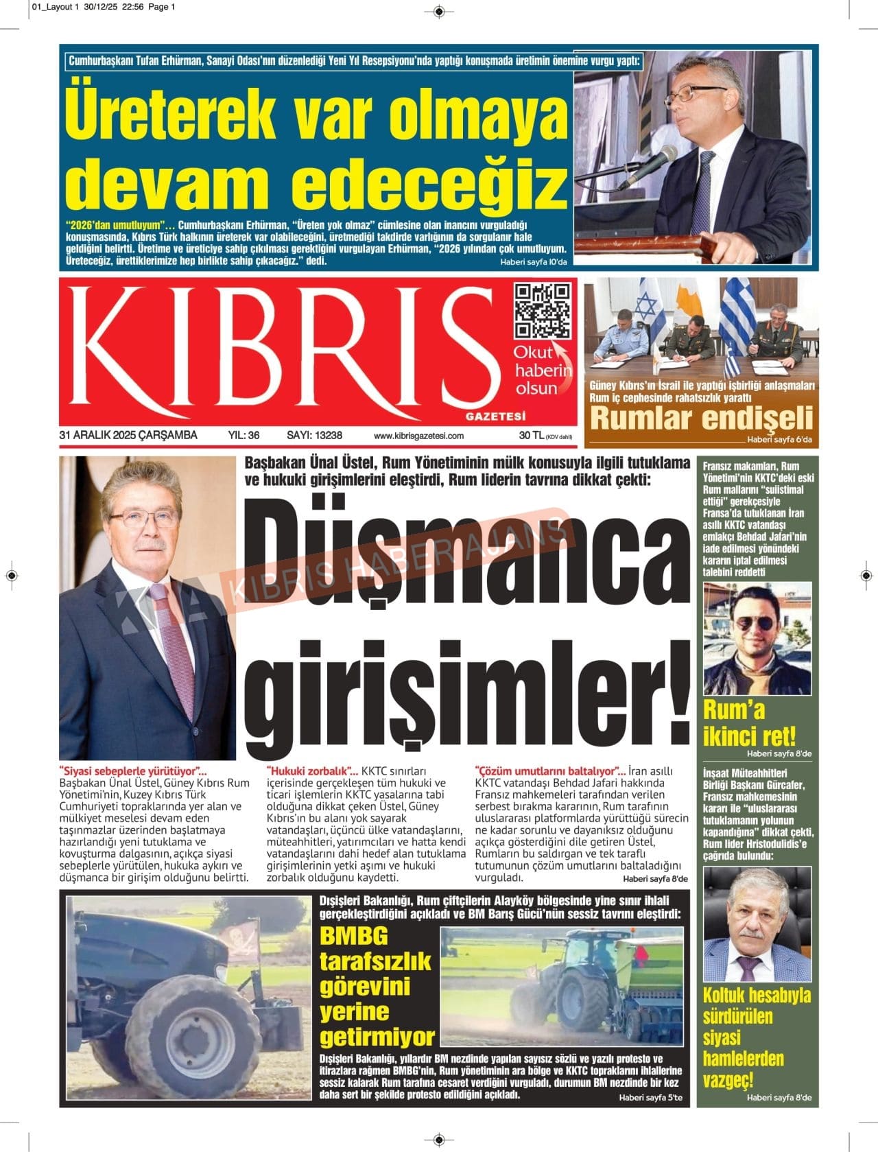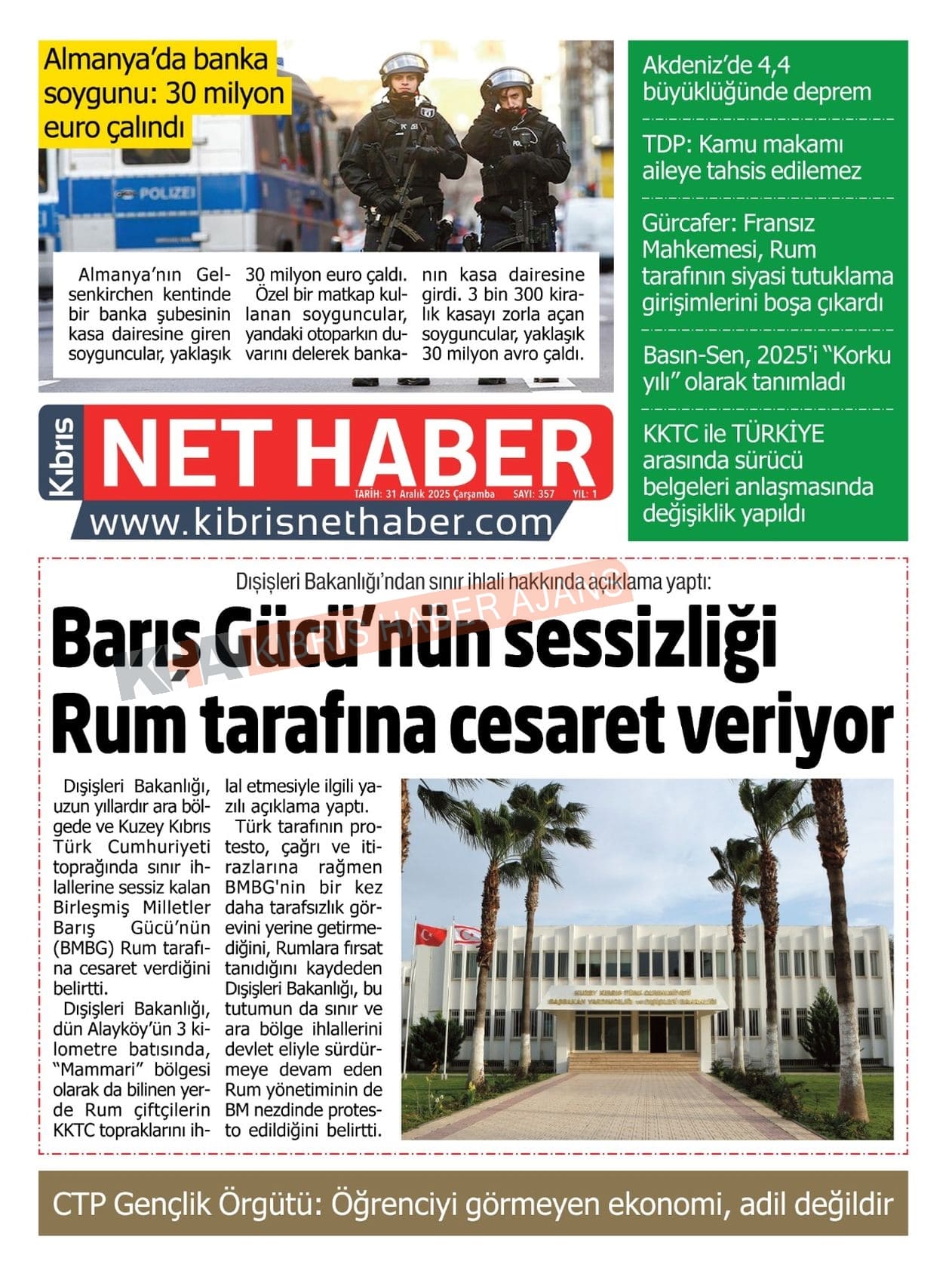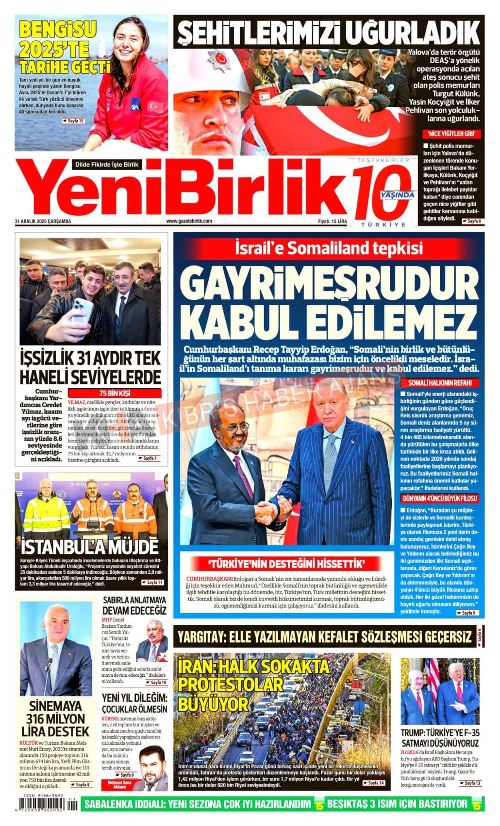 3. KKTC-TC Gazetelerinde Bugün (31 Aralık 2025)