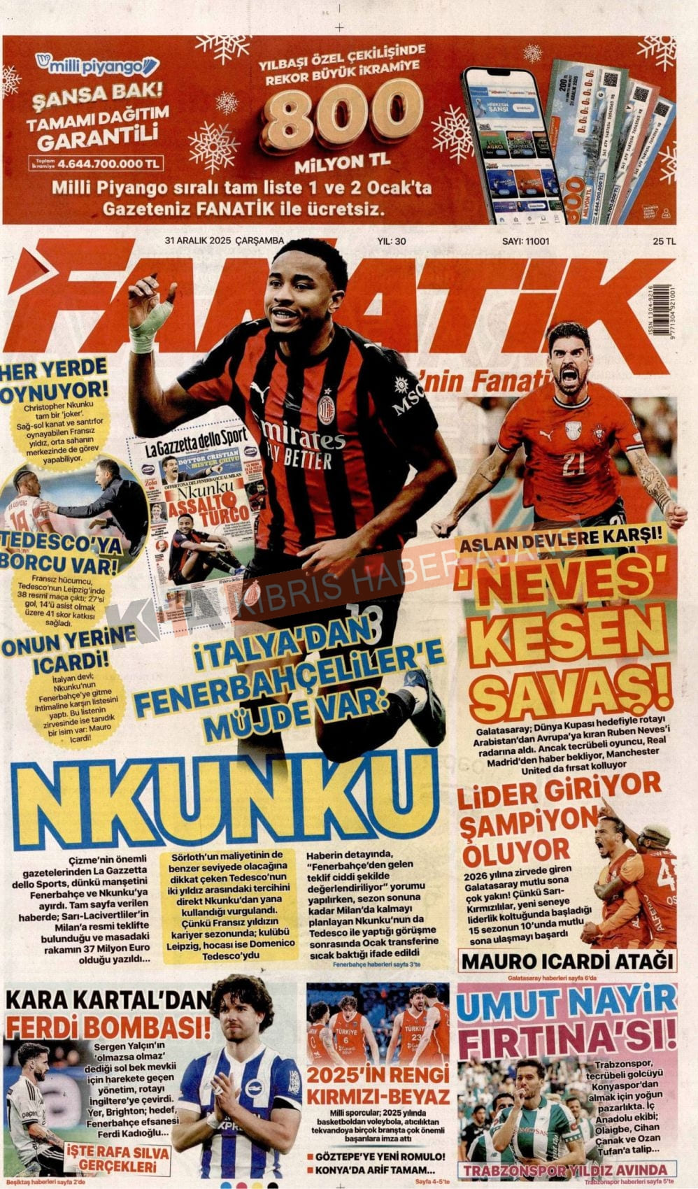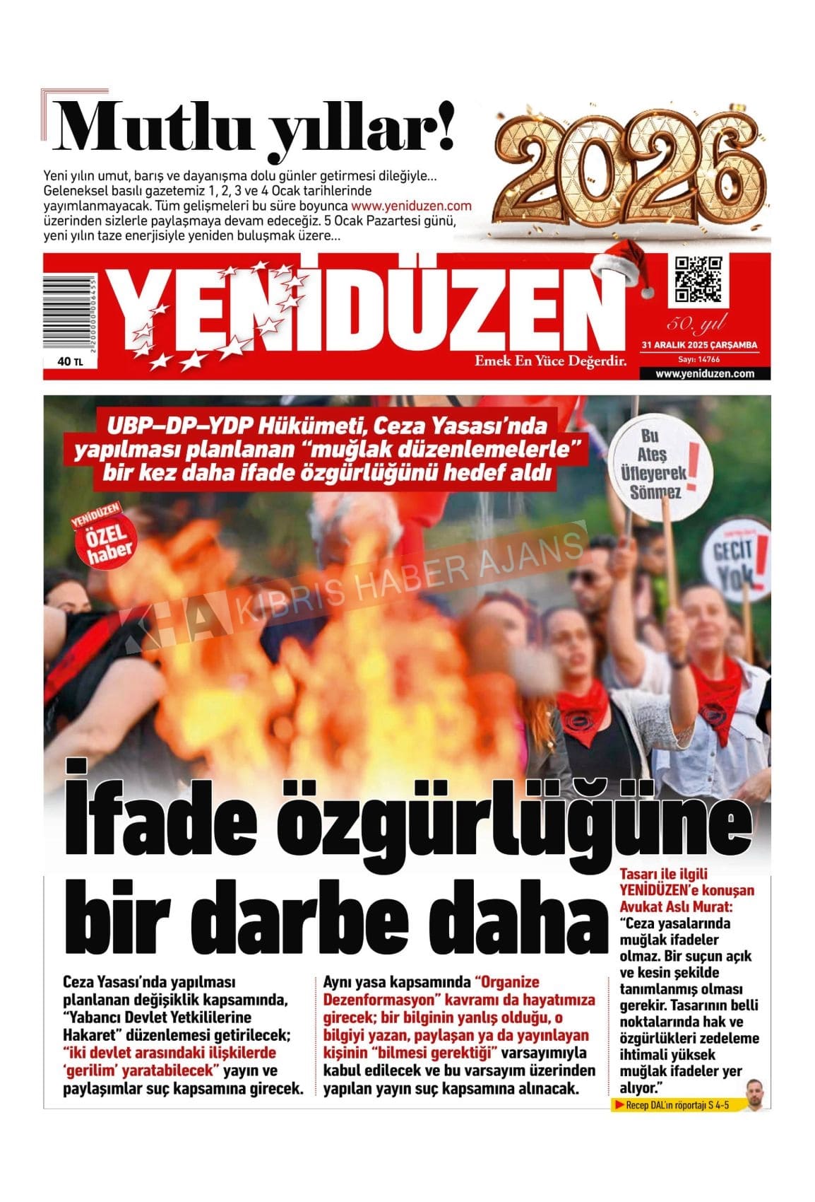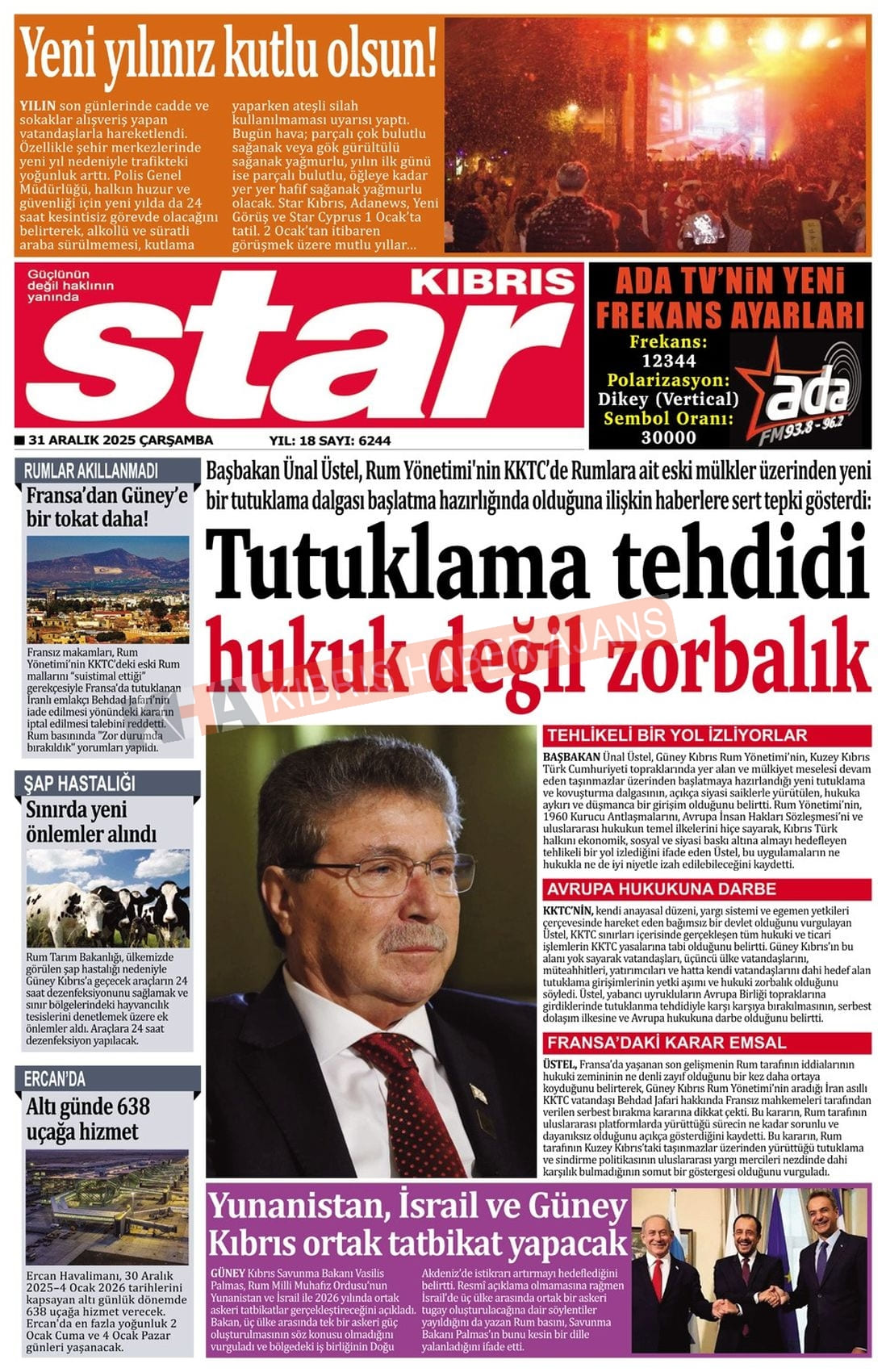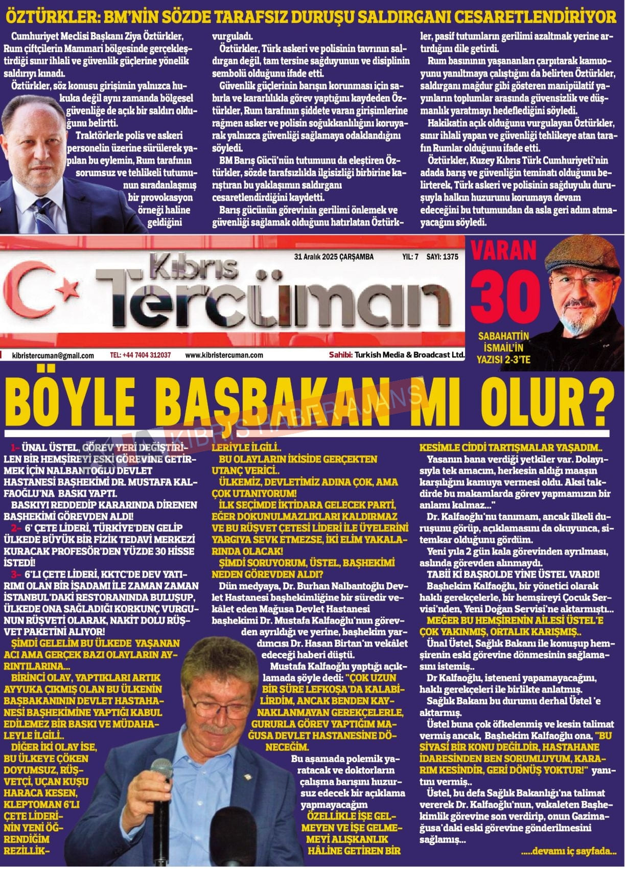 3. KKTC-TC Gazetelerinde Bugün (31 Aralık 2025)