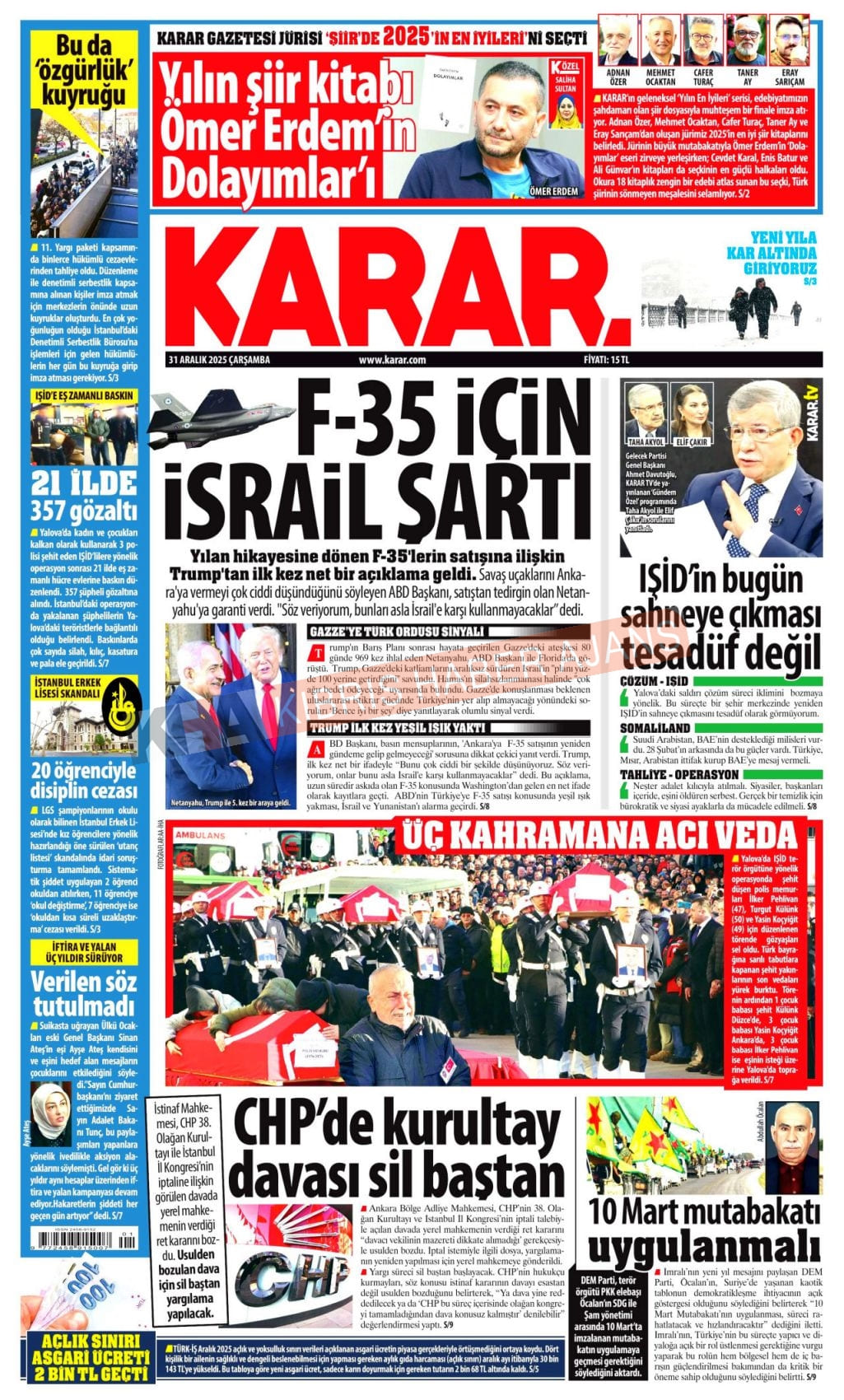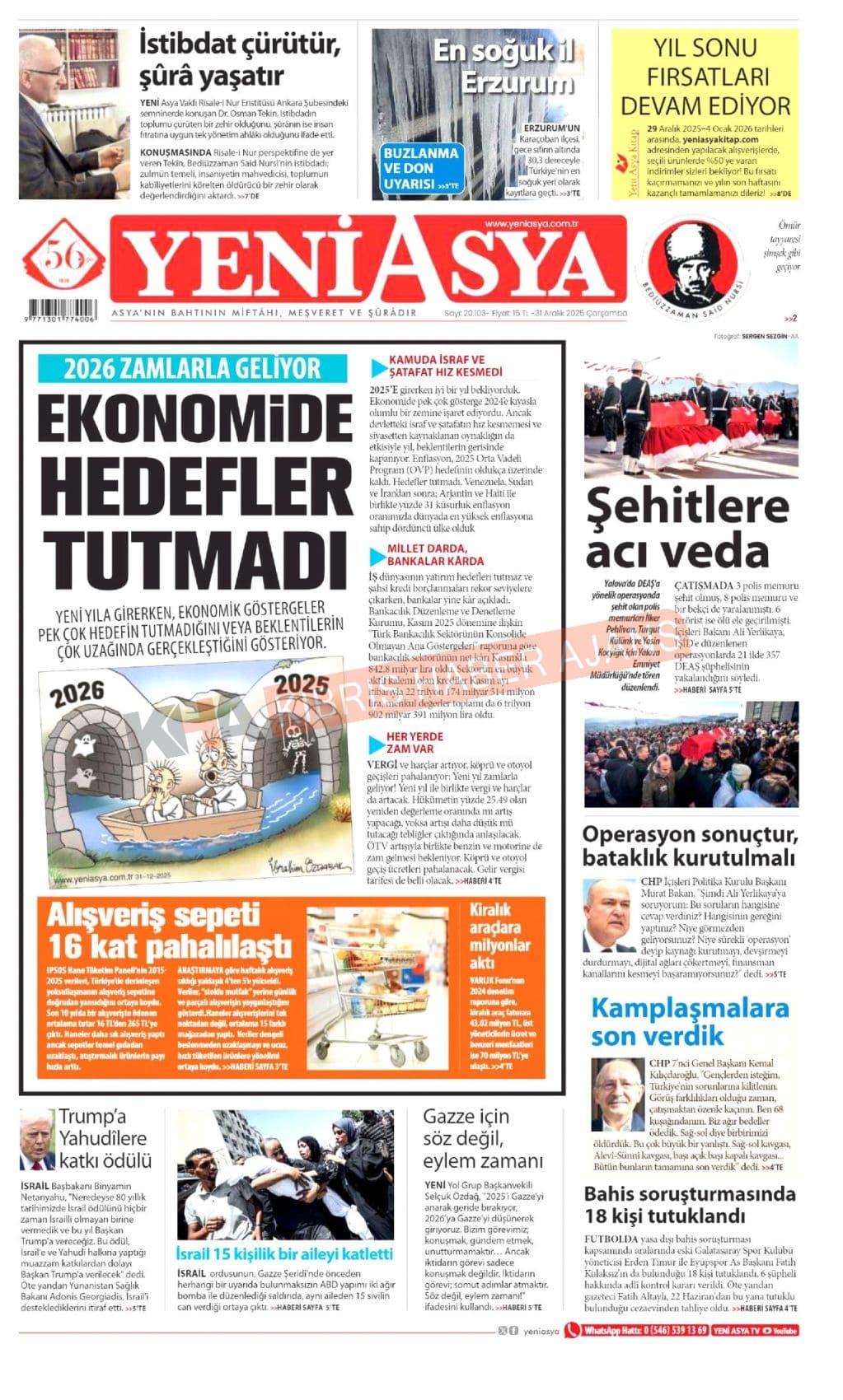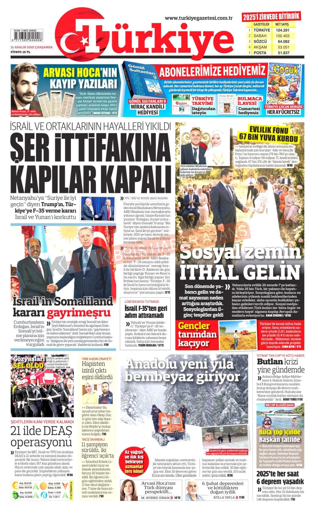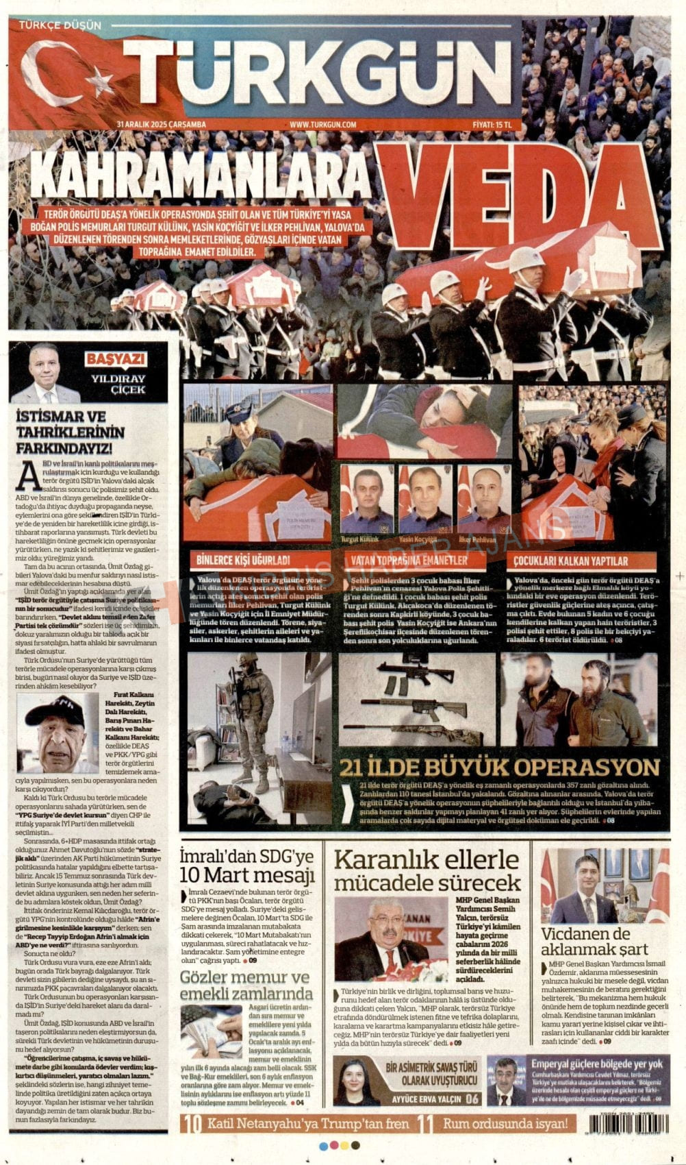 3. KKTC-TC Gazetelerinde Bugün (31 Aralık 2025)