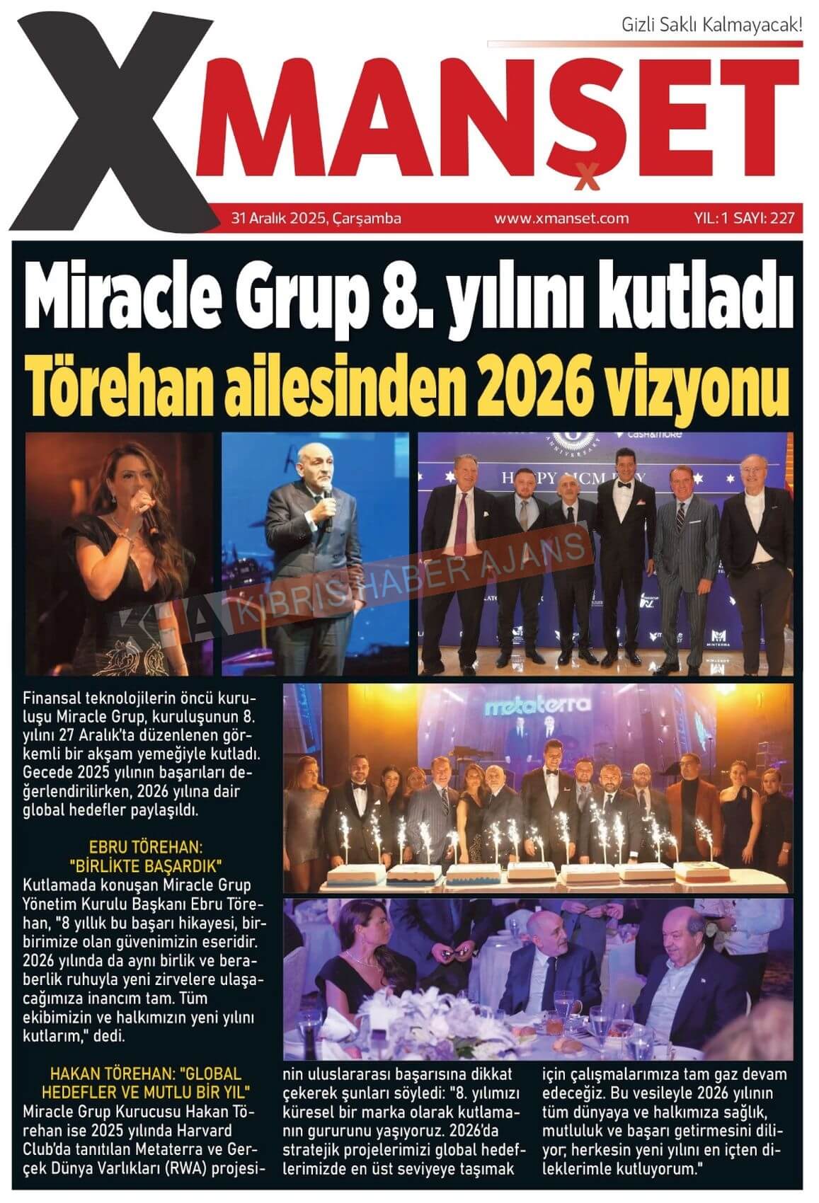 Sitede yayınlanan gazetelerdeki içeriklerden gazete sahipleri sorumludur. Yayınlanan gazeteler ve içeriklerinden Kıbrıs Haber Ajans ve Ajans Cyprus sorumlu tutulamaz.