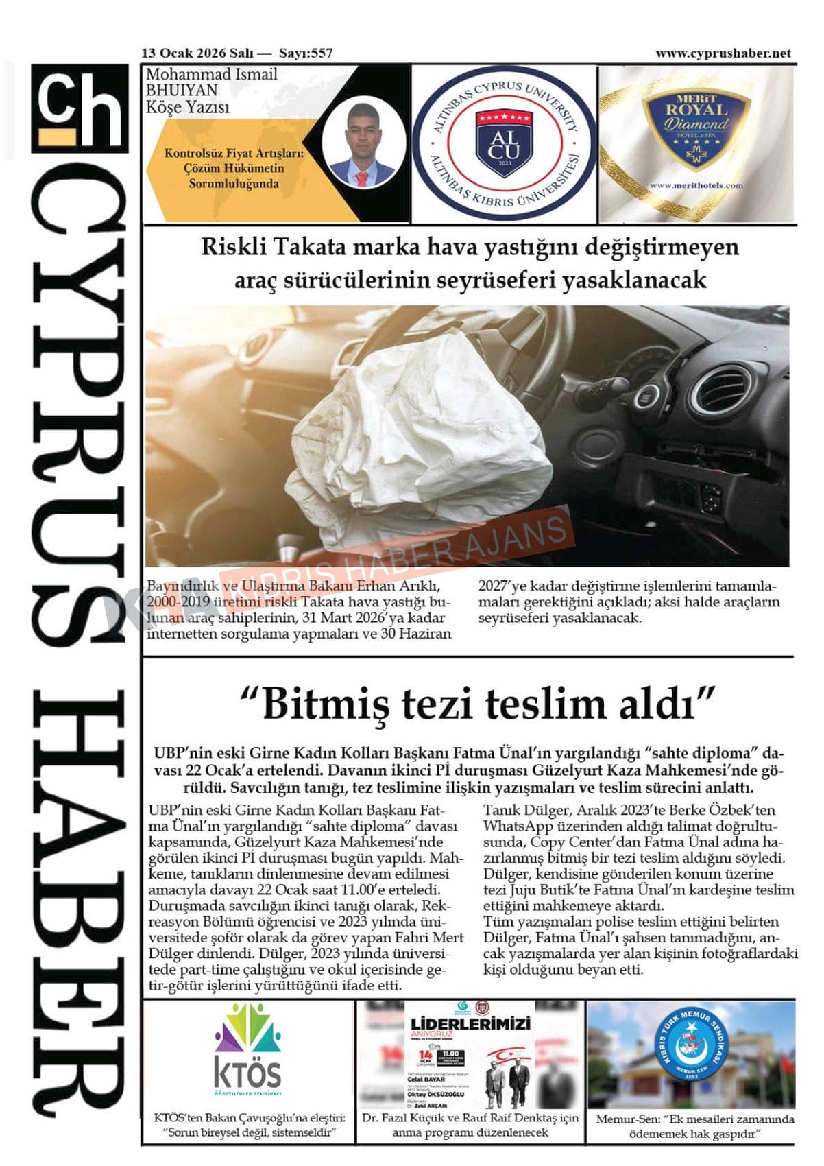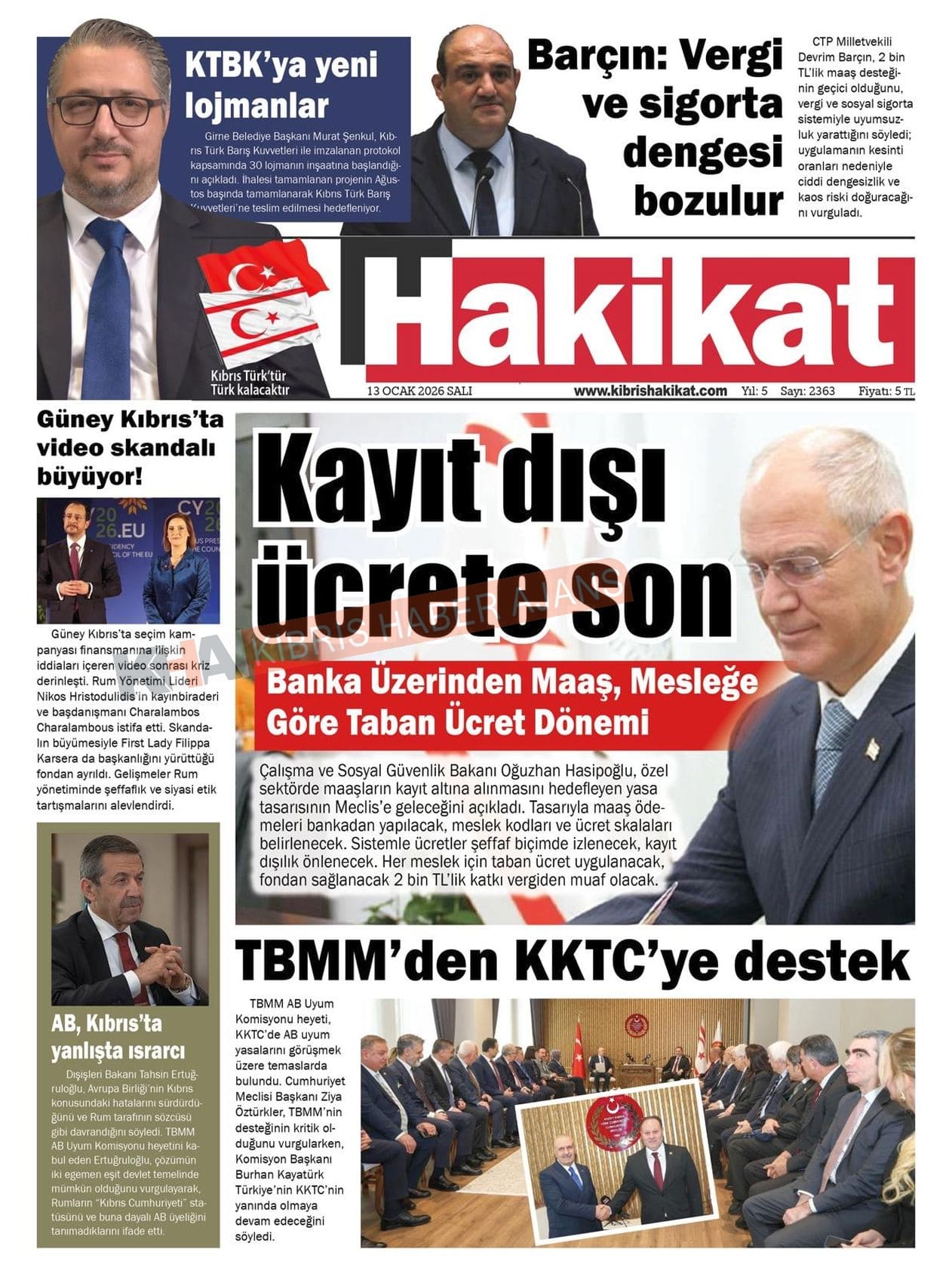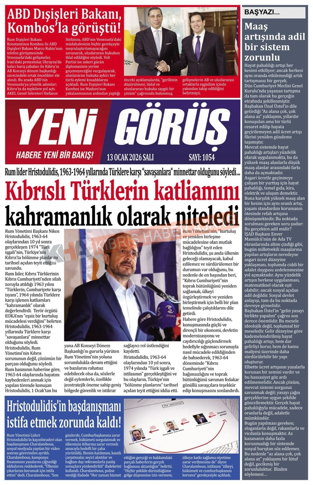 KKTC-TC Gazetelerinde Bugün ( 13 OCAK 2026)
