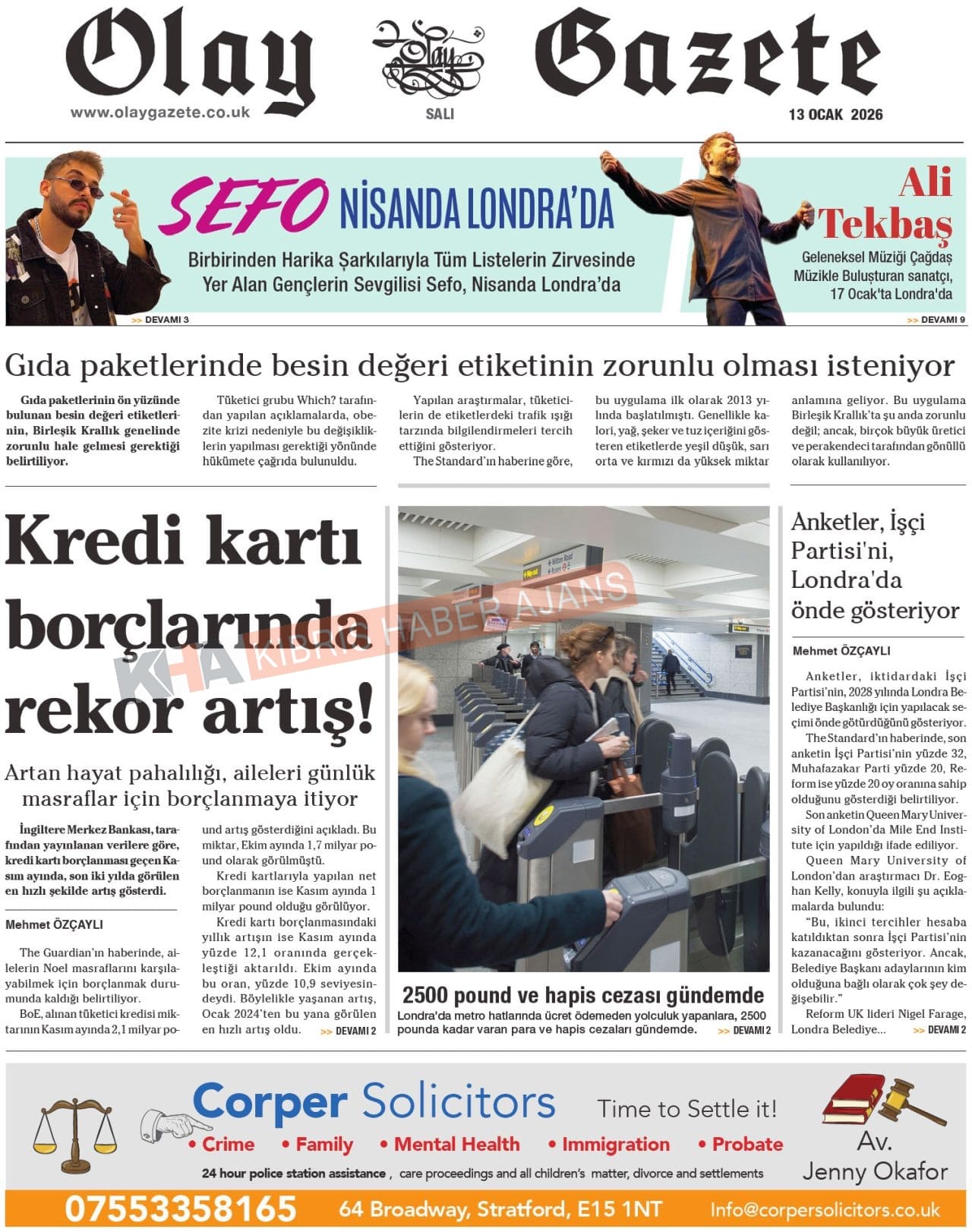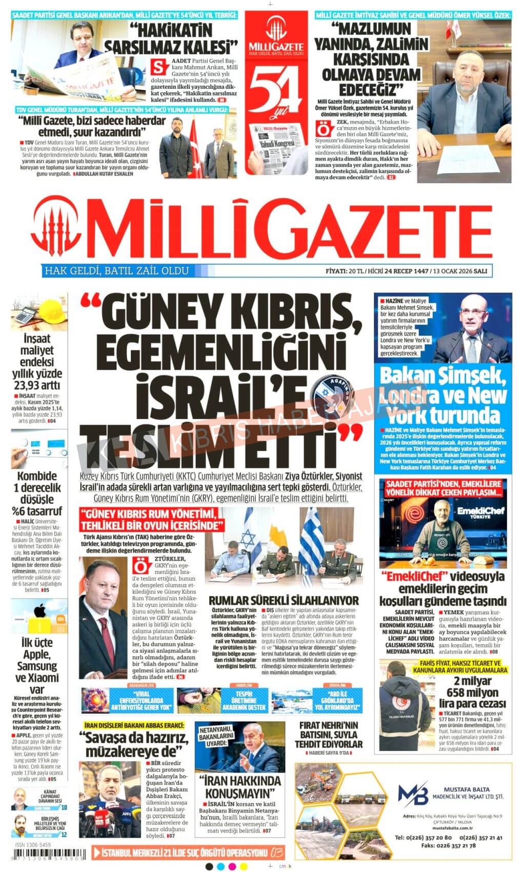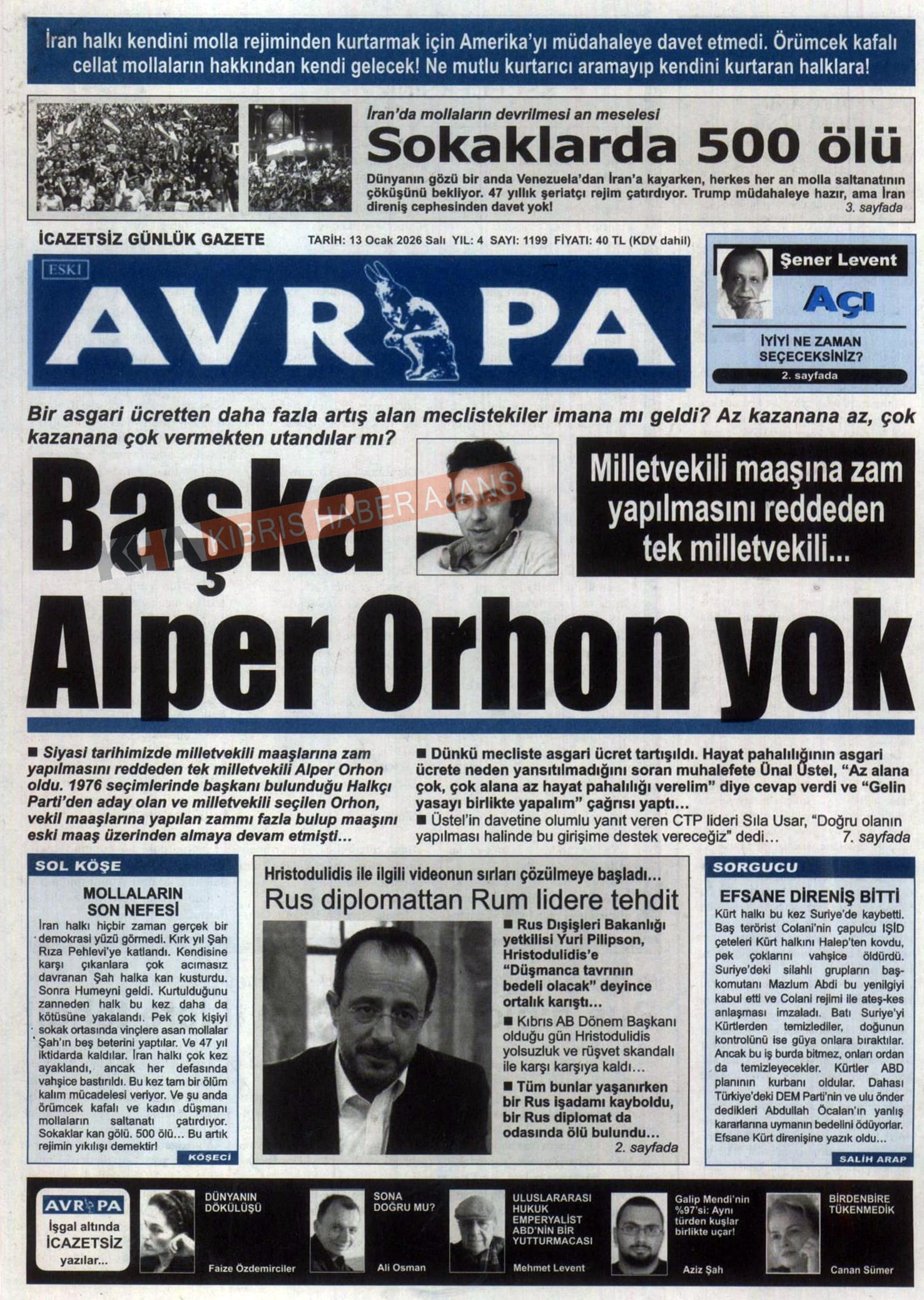 KKTC-TC Gazetelerinde Bugün ( 13 OCAK 2026)