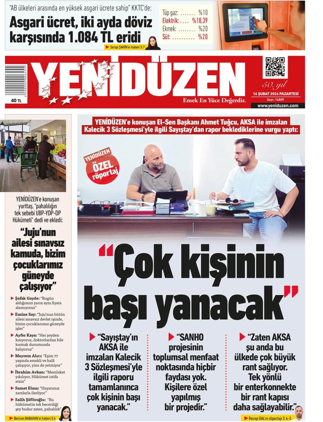 KKTC-TC Gazetelerinde Bugün (16 ŞUBAT 2026)