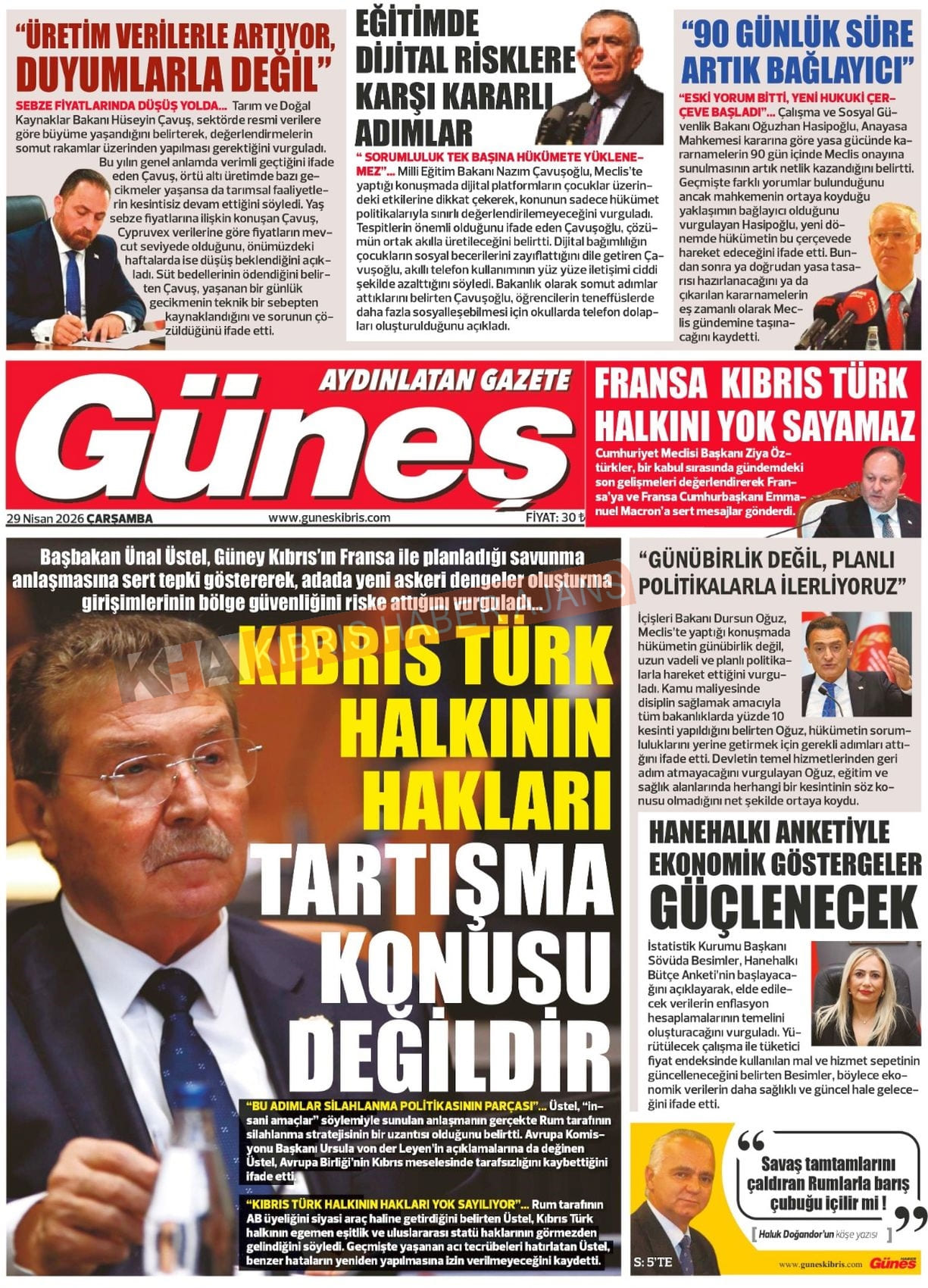 KKTC-TC Gazetelerinde Bugün (29 NİSAN 2026)