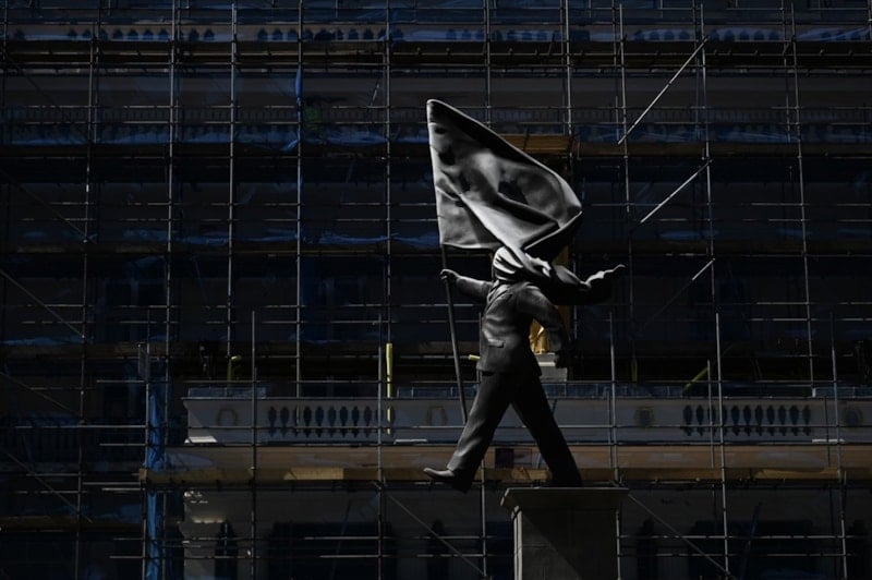 İngiltere’nin başkenti Londra’da gece yarısı ortaya çıkan devasa bir heykel, kimliği gizemini koruyan sokak sanatçısı Banksy’nin yeni eseri olabileceği iddialarıyla gündeme geldi. Şehrin önemli noktalarından biri olan Waterloo Place’te görülen eser, kısa sürede büyük ilgi topladı.