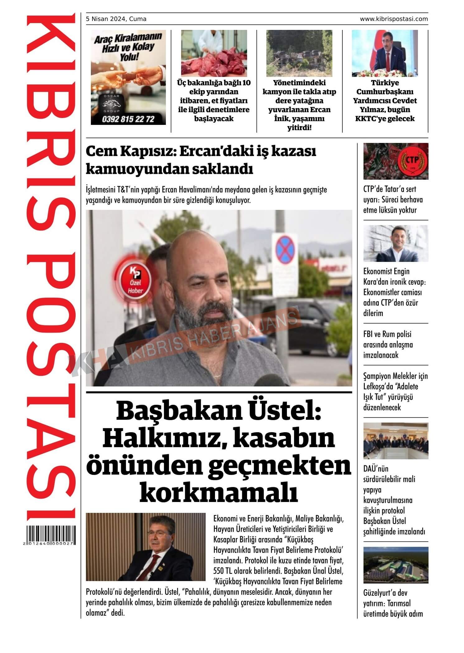 Haberler Gazeteler KKTC-TC Gazetelerinde Bugün (05 NİSAN 2024) KKTC-TC Gazetelerinde Bugün (05 NİSAN 2024) 5 Nisan 2024, 07:35 yayınlandı 5 Nisan 2024, 09:01 güncellendi 17 + - Paylaş Bu Yazıyı Paylaş veya linki kopyala Kopyala TARİHTE BUGÜN YAŞANILANLAR İÇİN TIKLAYINIZ Göz AtınKKTC-TC Gazetelerinde Bugün (05 Aralık 2025)KKTC-TC Gazetelerinde Bugün (04 Aralık 2025)KKTC-TC Gazetelerinde Bugün (03 Aralık 2025) KKTC-TC Gazetelerinde Bugün (05 NİSAN 2024) Yorum Yap Paylaş Haberle ilgili daha fazlası:# başlıklar # Gazete # kıbrıs gazeteleri # kktc gazeteler # manşetler # tc gazeteler # türkiye gazeteleri Tamamen Ücretsiz Olarak Bültenimize Abone Olabilirsin Yeni haberlerden haberdar olmak için fırsatı kaçırma ve ücretsiz e-posta aboneliğini hemen başlat. Abone Ol