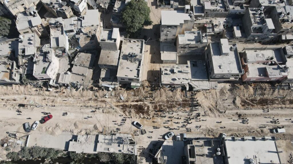 İsrail ordusuna ait askeri iş makinalarının, Tulkerim’in ana caddelerinde 3 metreden daha derin hendekler kazdığını gözlemledi.