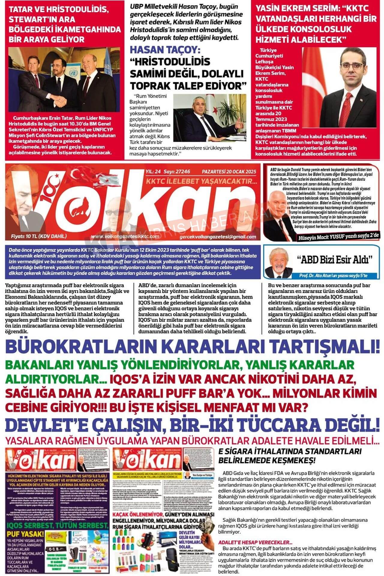KKTC-TC Gazetelerinde Bugün ( 20 OCAK 2025)