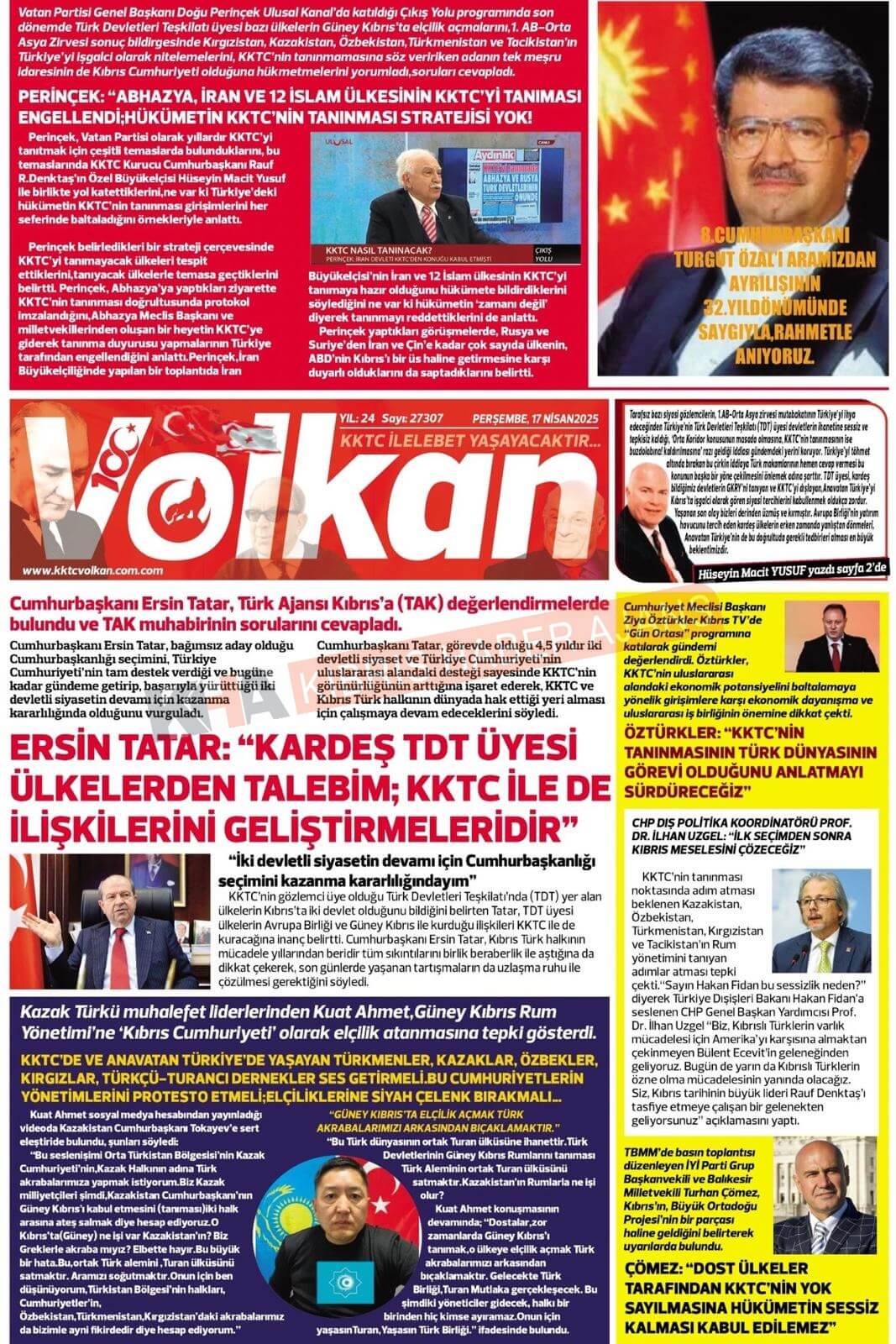 3. KIBRIS -TÜRKİYE Gazetelerinde Günün Manşetleri (17 NİSAN 2025)