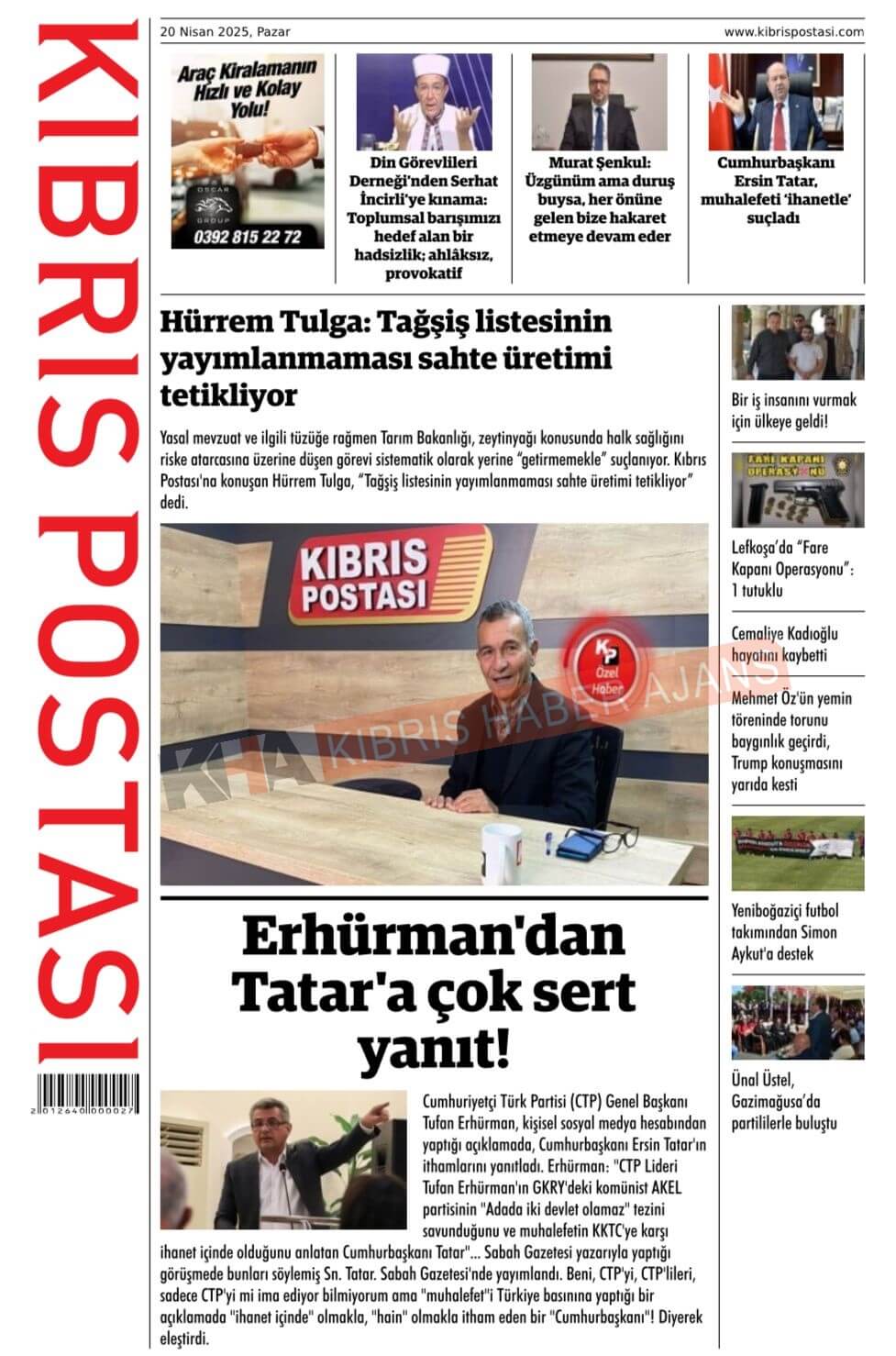 KIBRIS -TÜRKİYE Gazetelerinde Günün Manşetleri (20 NİSAN 2025)