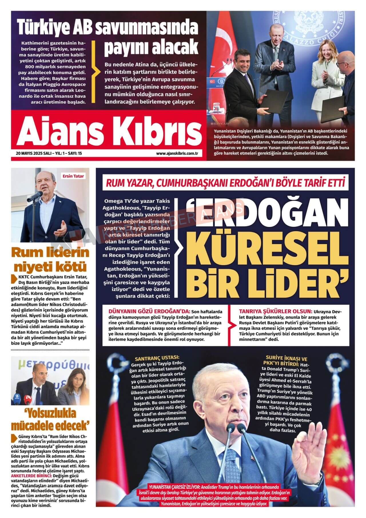 KIBRIS -TÜRKİYE Gazetelerinde Günün Manşetleri (20 MAYIS 2025)