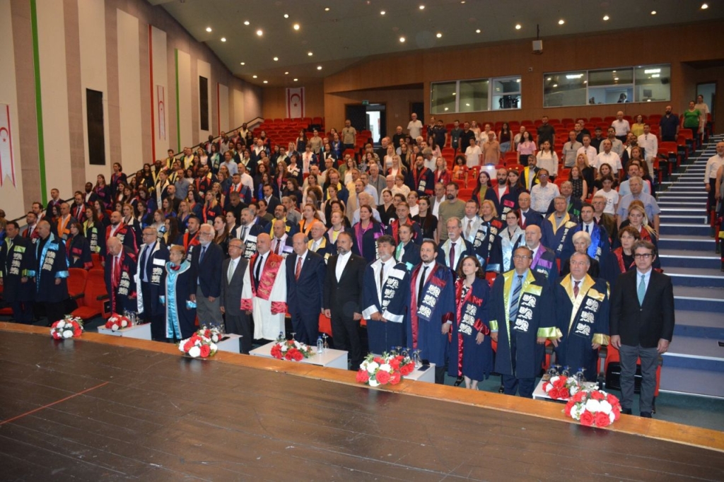 Yakın Doğu Üniversitesi 2024-2025 Akademik Yılı Akademik Yükseltme Töreni, Cumhurbaşkanı Ersin Tatar’ın katılımıyla Atatürk Kültür ve Kongre Merkezi’nde gerçekleştirdi. Törende, 64’ü yardımcı doçent, 24’ü doçent ve 19’u profesör olmak üzere 100’ün üzerinde akademisyen atama belgelerini aldı.