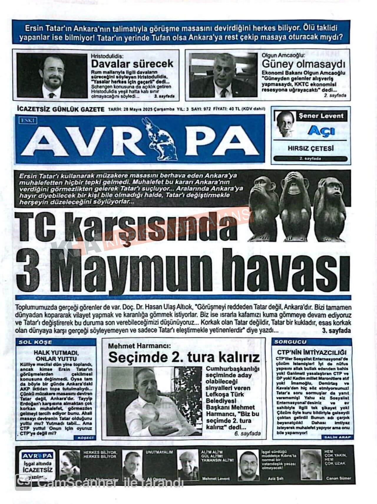 KIBRIS -TÜRKİYE Gazetelerinde Günün Manşetleri (28 MAYIS 2025)