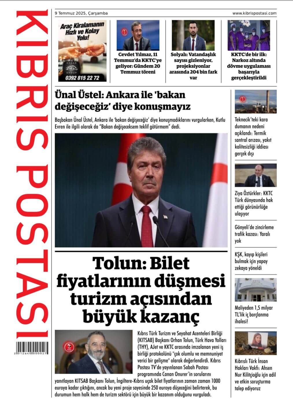 3. KIBRIS -TÜRKİYE Gazetelerinde Günün Manşetleri (09 TEMMUZ 2025)