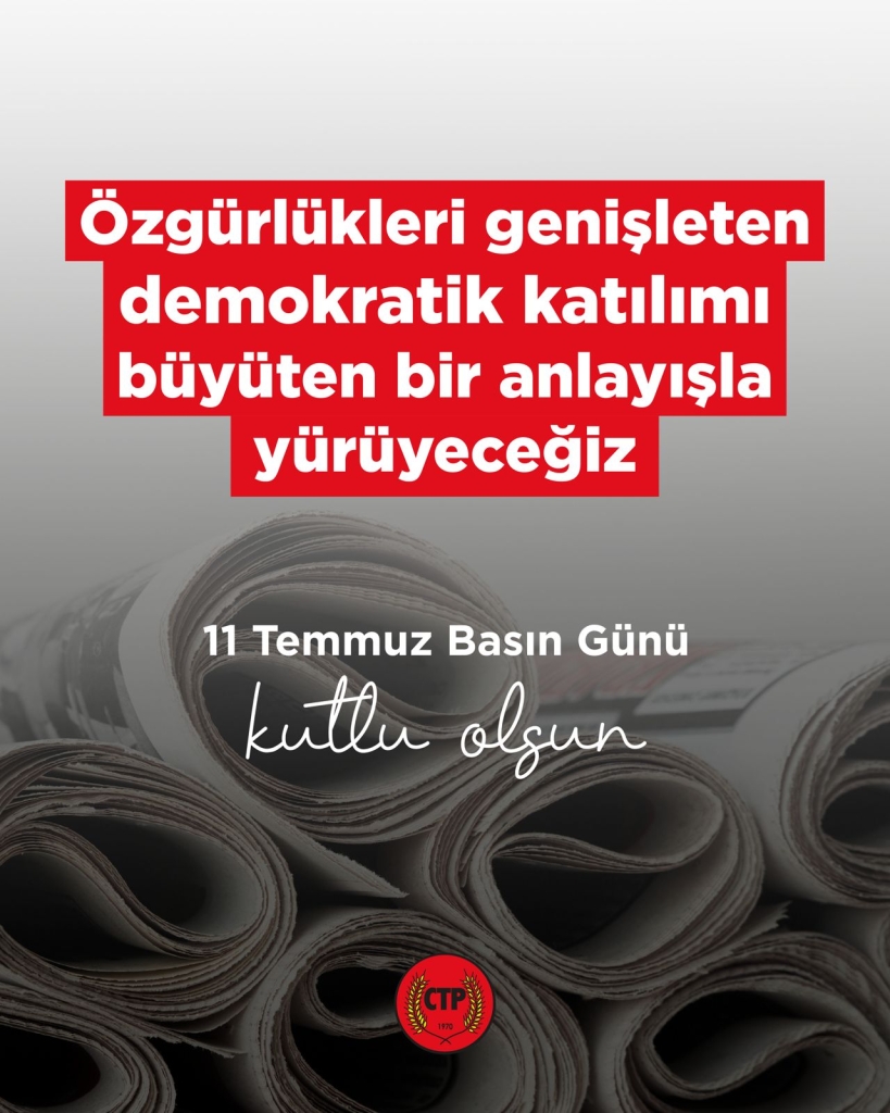 Bu topraklarda imkânsızlıklar içinde, gecesini gündüzüne katarak çalışan, halkın gözü kulağı olan basın emekçilerini saygı ve dayanışmayla selamlıyoruz. CTP olarak, sadece muhalefette değil, iktidarda da etik değerlere bağlı ve özgürlükleri genişleten, demokratik katılımı büyüten, basının görevini hak ettiği koşullarda yapabilmesini sağlayan bir anlayışla yol yürüyeceğimizi yineliyoruz. Özgürlük, demokrasi ve halkın haber alma hakkı için mücadelemiz sürecek.