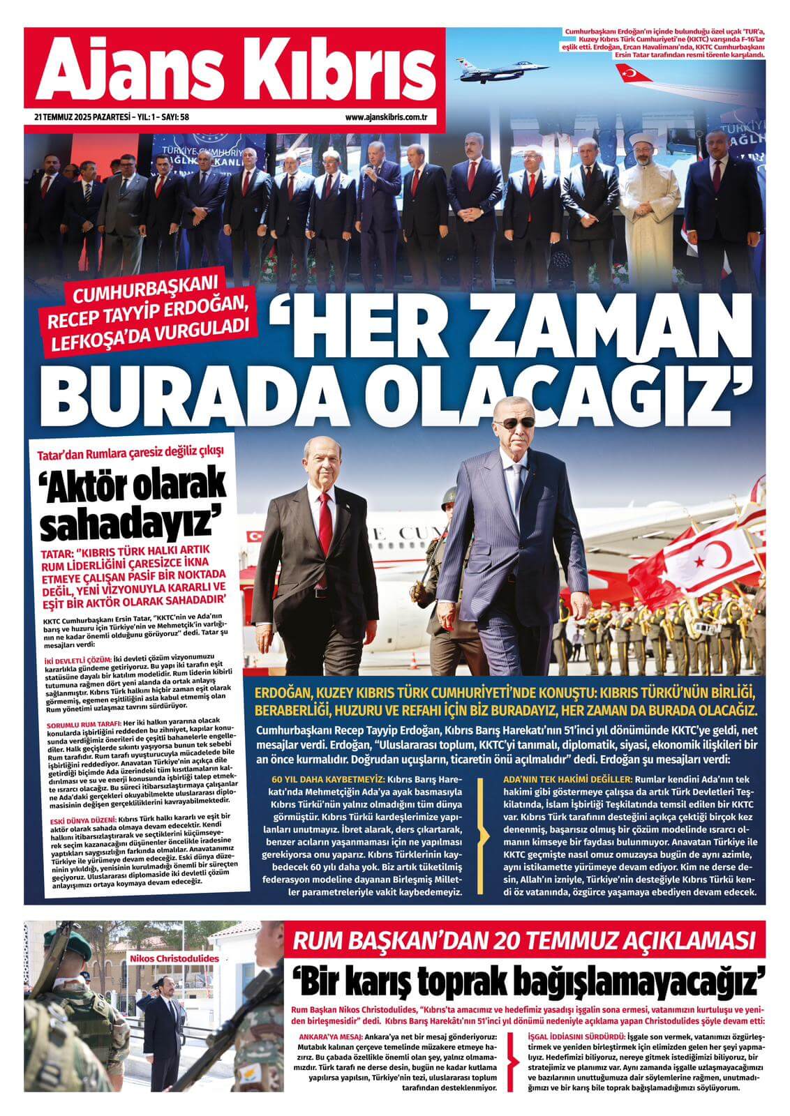 KIBRIS -TÜRKİYE Gazetelerinde Günün Manşetleri (21 TEMMUZ 2025)