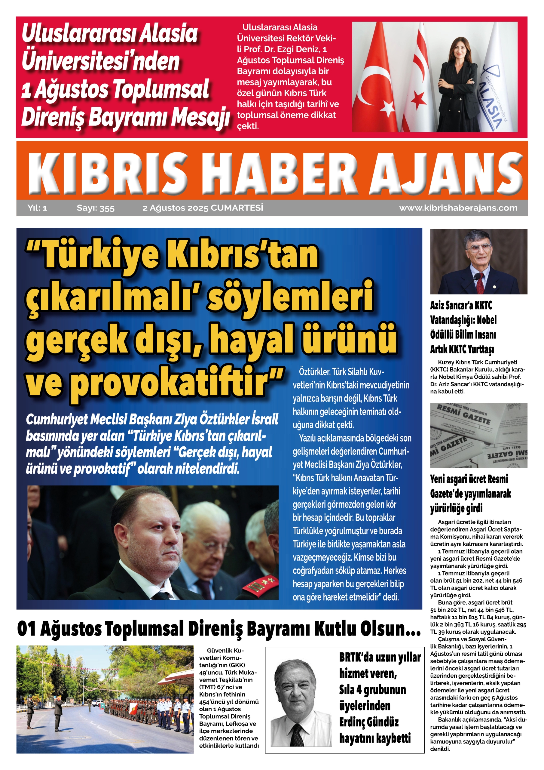 KIBRIS -TÜRKİYE Gazetelerinde Günün Manşetleri (02 AĞUSTOS 2025)