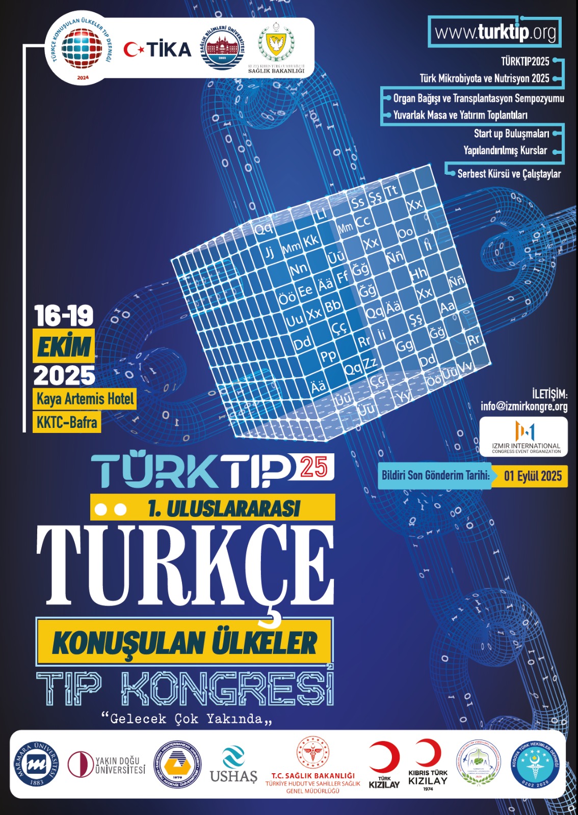 Yakın Doğu Üniversitesi’nin de partnerleri arasında yer aldığı “I. Uluslararası Türkçe Konuşulan Ülkeler Tıp Kongresi” (TÜRKTIP2025), 16-19 Ekim 2025 tarihlerinde Kuzey Kıbrıs Türk Cumhuriyeti’nde gerçekleştirilecek. Türkçe Konuşulan Ülkeler Tıp Derneği tarafından “Gelecek Çok Yakında” temasıyla düzenlenecek kongre, Türk dünyasının hekimlerini aynı çatı altında buluşturacak.