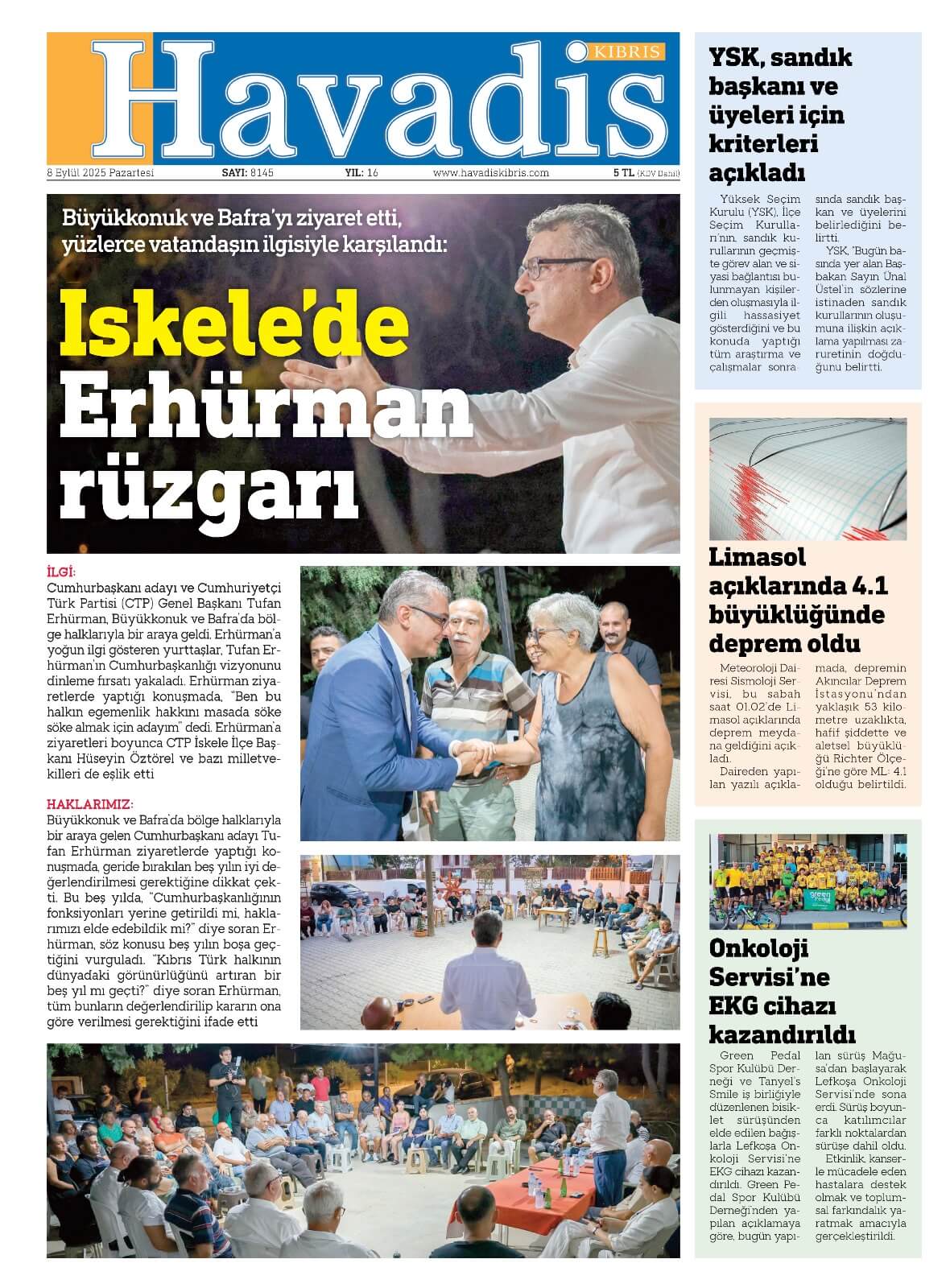 3. KIBRIS -TÜRKİYE Gazetelerinde Günün Manşetleri (08 EYLÜL 2025)