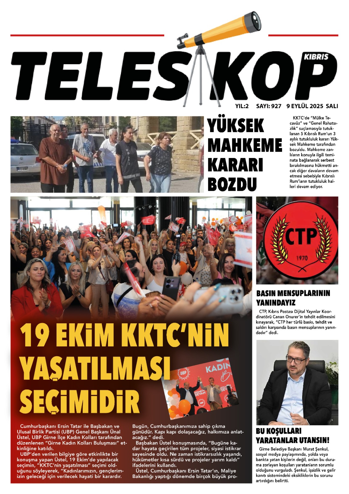 Sitede yayınlanan gazetelerdeki içeriklerden gazete sahipleri sorumludur. Yayınlanan gazeteler ve içeriklerinden Kıbrıs Haber Ajans ve Ajans Cyprus sorumlu tutulamaz.