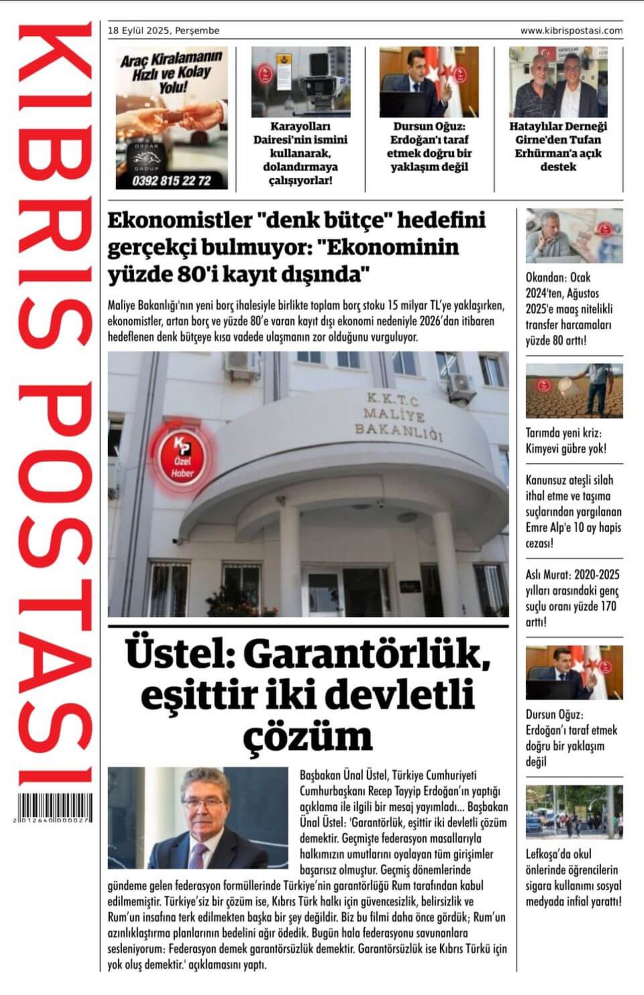 3. KIBRIS -TÜRKİYE Gazetelerinde Günün Manşetleri (18 EYLÜL 2025)