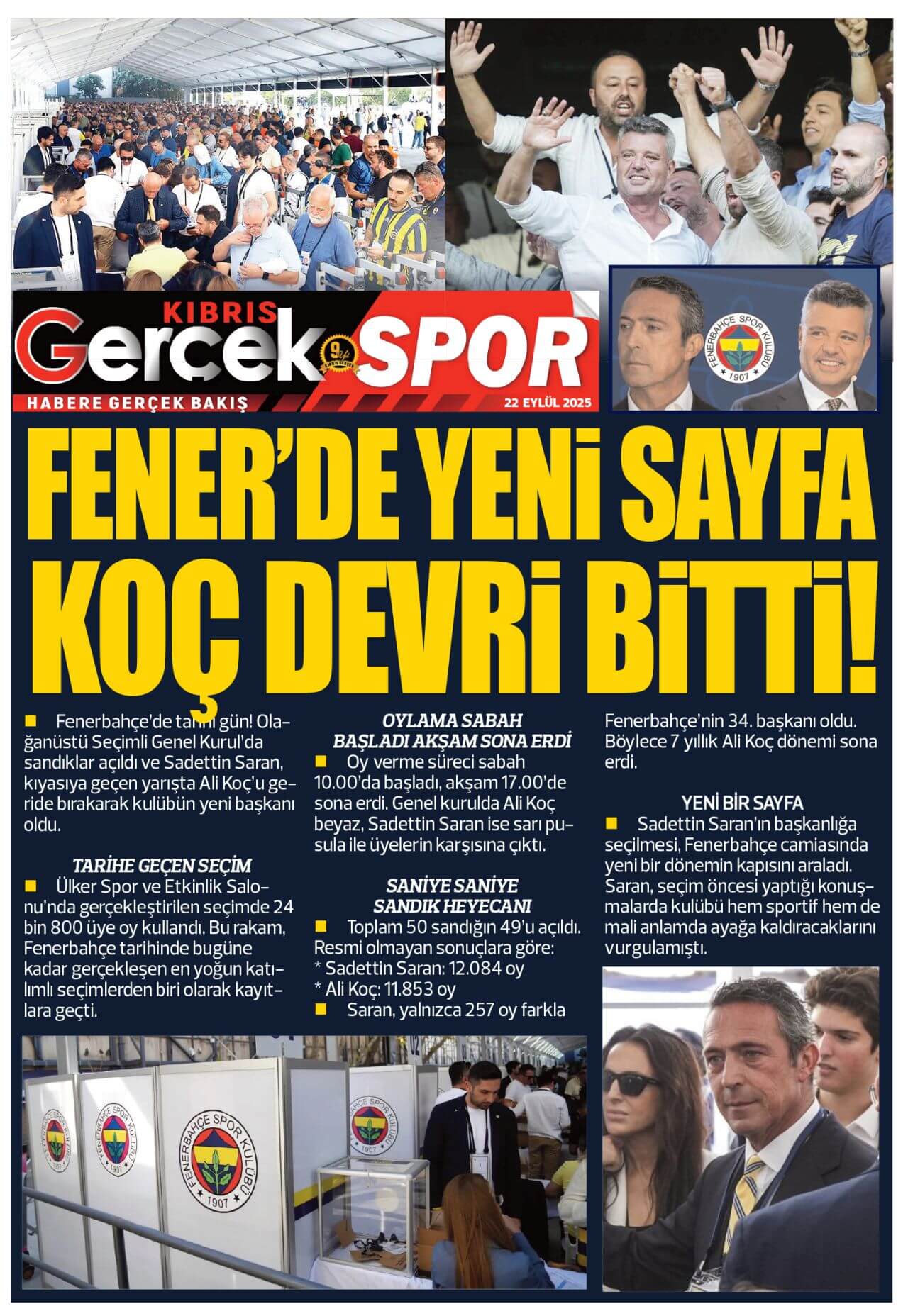 KIBRIS -TÜRKİYE Gazetelerinde Günün Manşetleri (22 EYLÜL 2025)