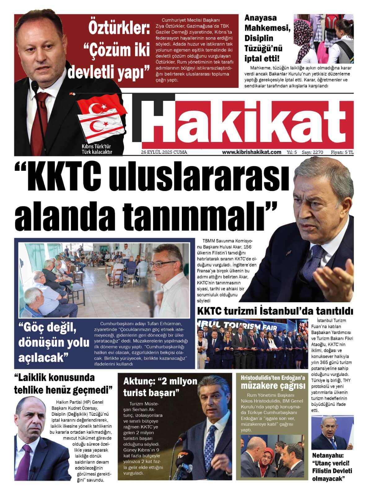 3. KIBRIS -TÜRKİYE Gazetelerinde Günün Manşetleri (26 EYLÜL 2025)
