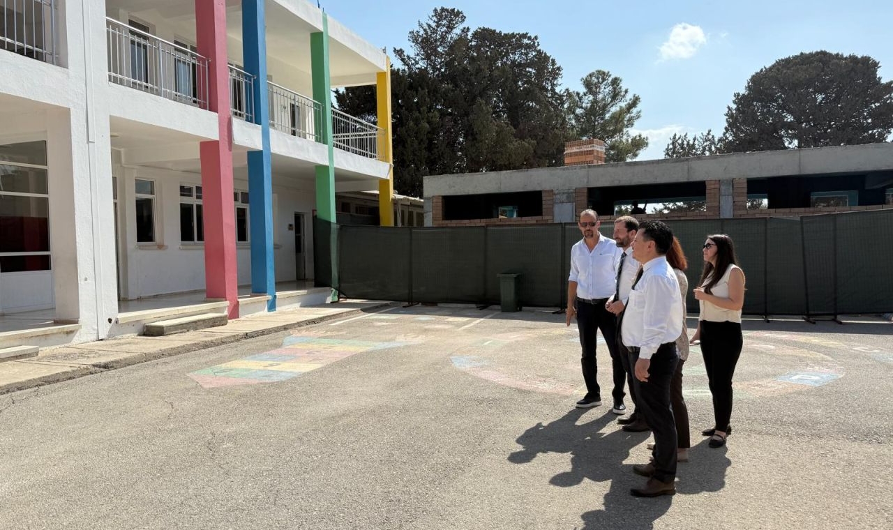 Gönyeli İlkokulu proje alanındaki incelemelerde konuşan KEİ Ofisi Koordinatörü Erol Öz, KKTC Milli Eğitim Bakanlığı ile yürütülen çalışmalar kapsamında, Türkiye Cumhurbaşkanı Yardımcısı Cevdet Yılmaz’ın tensipleriyle Gönyeli’de 8.750 metrekarelik bir alanda yeni bir ilkokul inşa edileceğini belirtti.