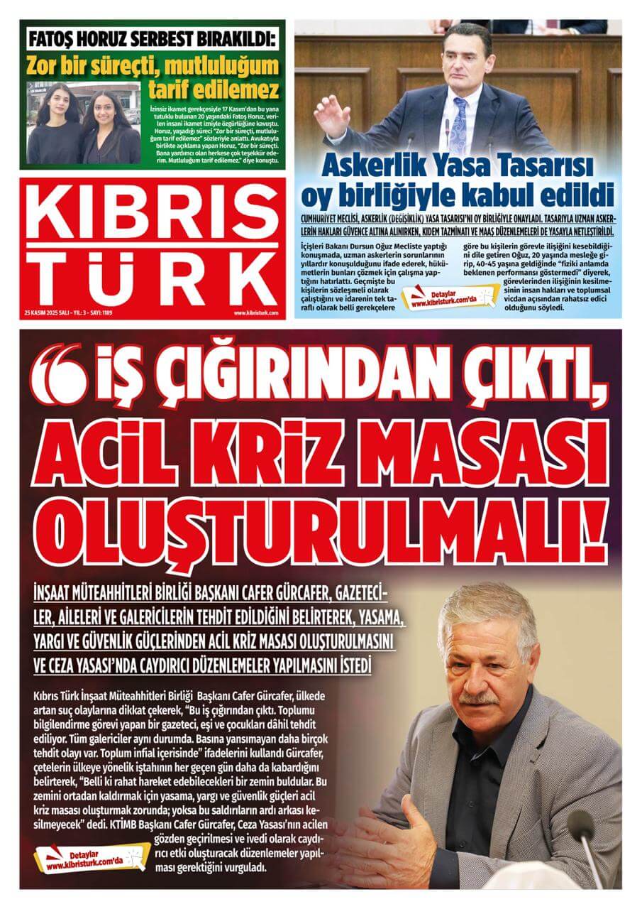 3. KKTC-TC Gazetelerinde Bugün (25 Kasım 2025)