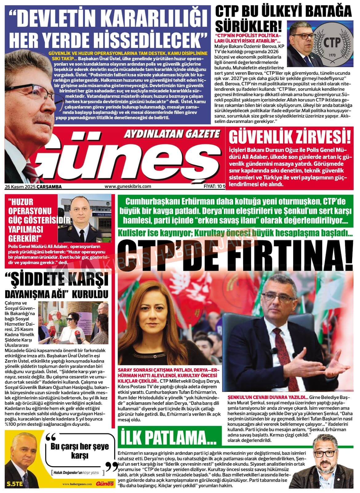 KKTC-TC Gazetelerinde Bugün (26 Kasım 2025)