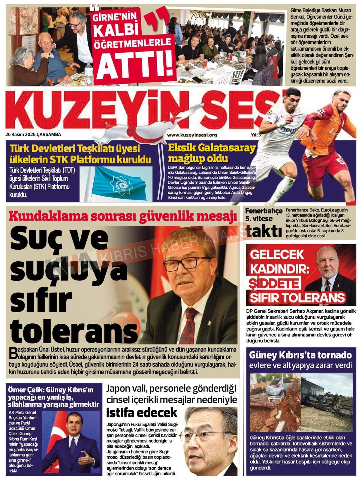 3. KKTC-TC Gazetelerinde Bugün (26 Kasım 2025)