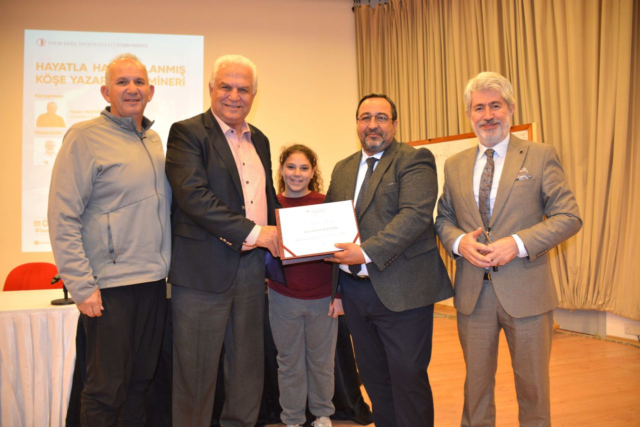 Yakın Doğu Üniversitesi İletişim Fakültesi tarafından düzenlenen “Hayatla Harmanlanmış Köşe Yazarlığı” başlıklı seminerde, deneyimli gazeteci ve köşe yazarı Hasan Hastürer öğrencilerle bir araya geldi. İletişim Fakültesi Turuncu Salon’da gerçekleştirilen etkinlik, öğrenciler ve akademisyenlerden yoğun ilgi gördü. Seminer boyunca köşe yazarlığının etkileri, gazetecilikte etik sorumluluklar ve yazarlığının hayata dokunan yönleri ele alındı.