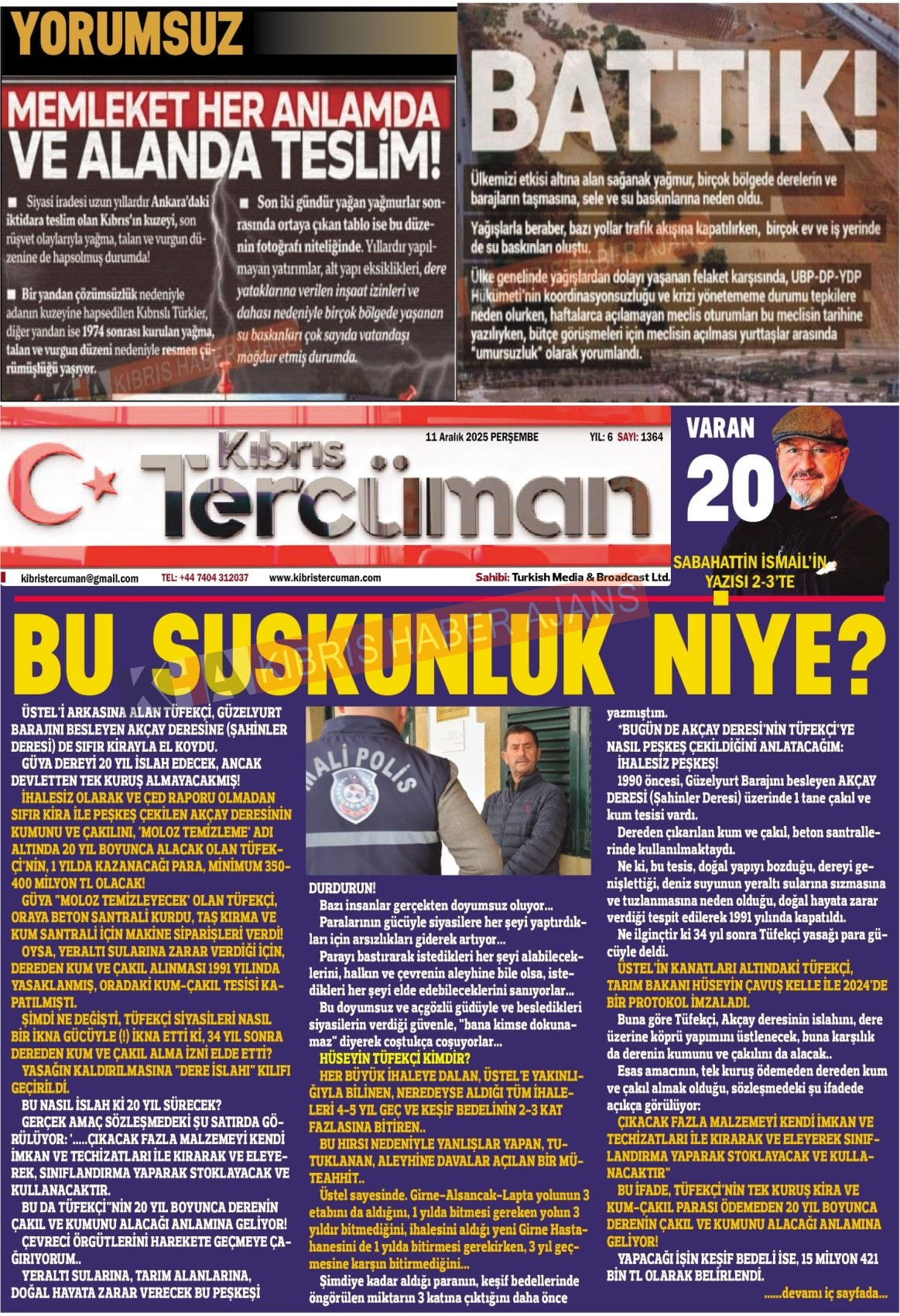 Sitede yayınlanan gazetelerdeki içeriklerden gazete sahipleri sorumludur. Yayınlanan gazeteler ve içeriklerinden Kıbrıs Haber Ajans ve Ajans Cyprus sorumlu tutulamaz.