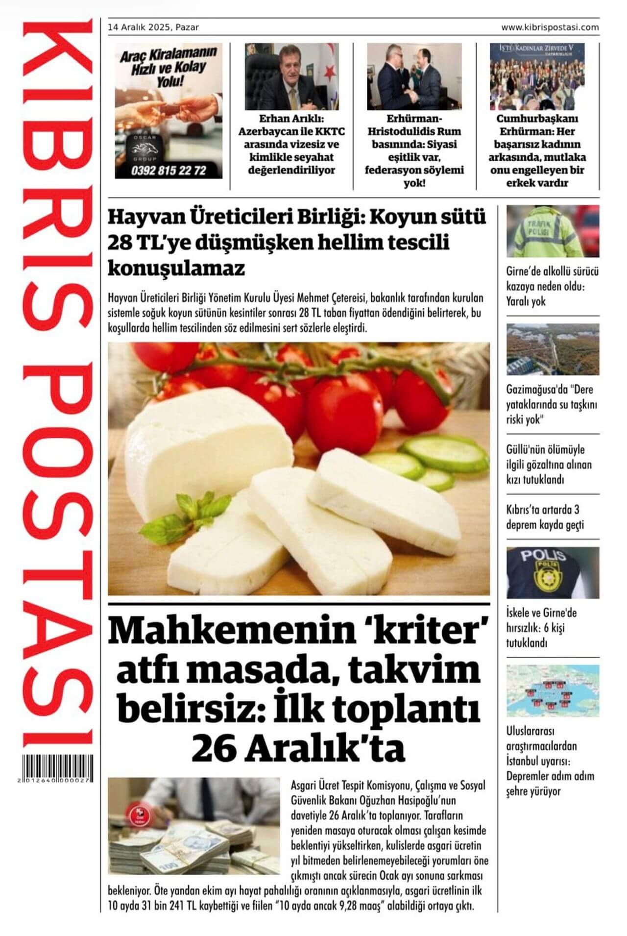 KKTC -TC Gazetelerinde Günün Manşetleri (14 Aralık 2025)