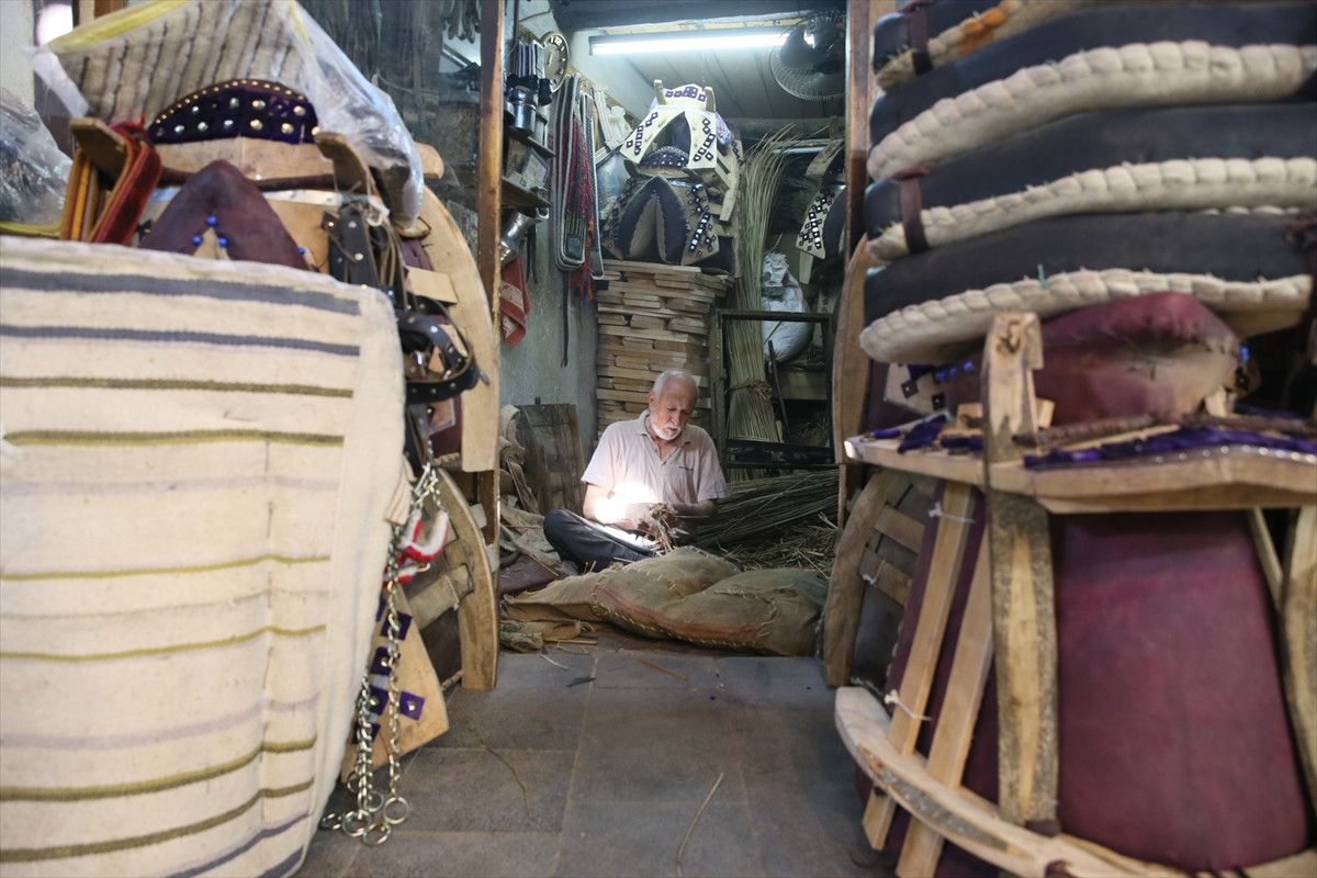 - Ali Özen, Kahramanmaraş’taki tarihi Semerciler Çarşısı’nda 60 yıldır semercilik yapıyor.