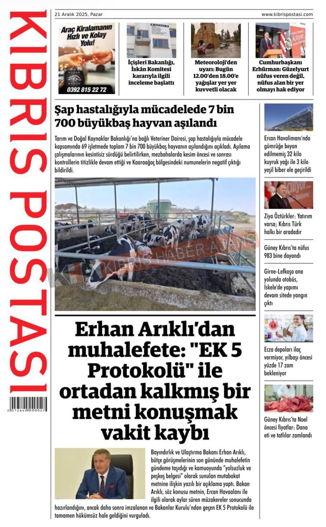 Sitede yayınlanan gazetelerdeki içeriklerden gazete sahipleri sorumludur. Yayınlanan gazeteler ve içeriklerinden Kıbrıs Haber Ajans ve Ajans Cyprus sorumlu tutulamaz.