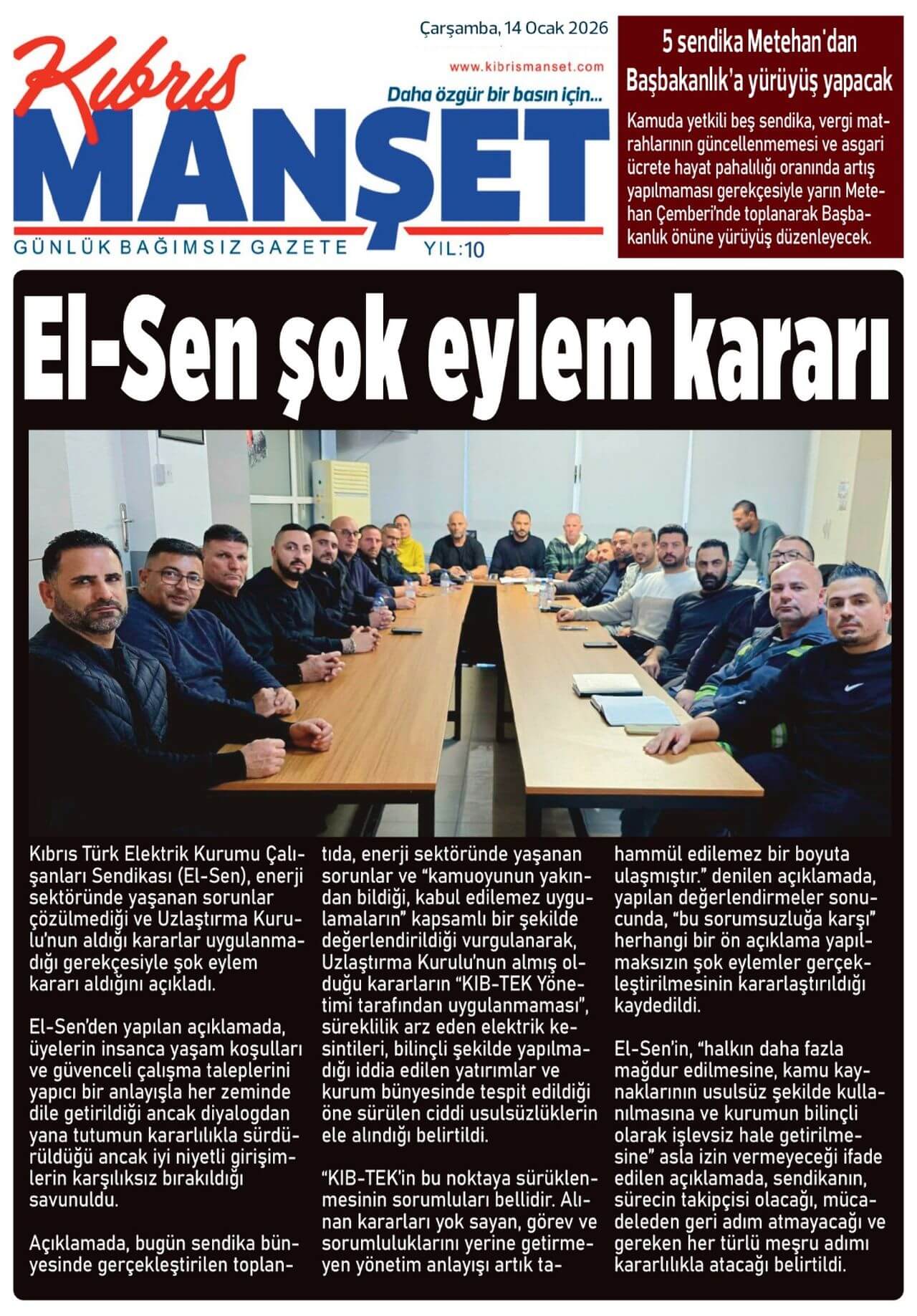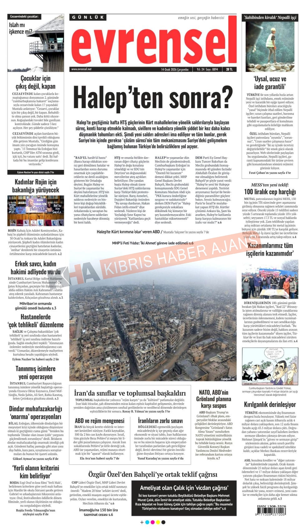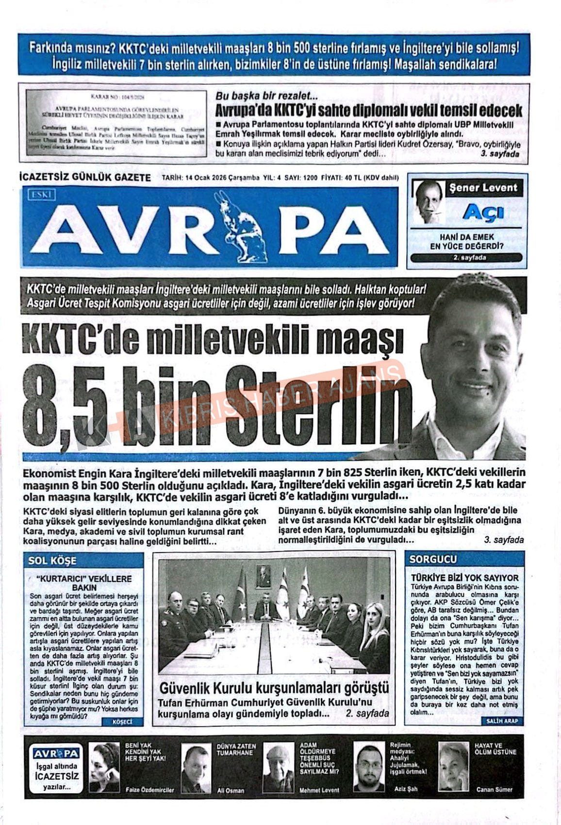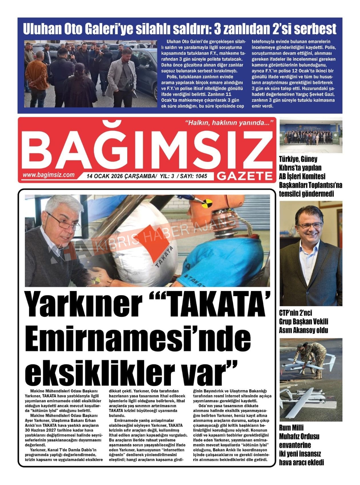 KKTC-TC Gazetelerinde Bugün ( 14 OCAK 2026)