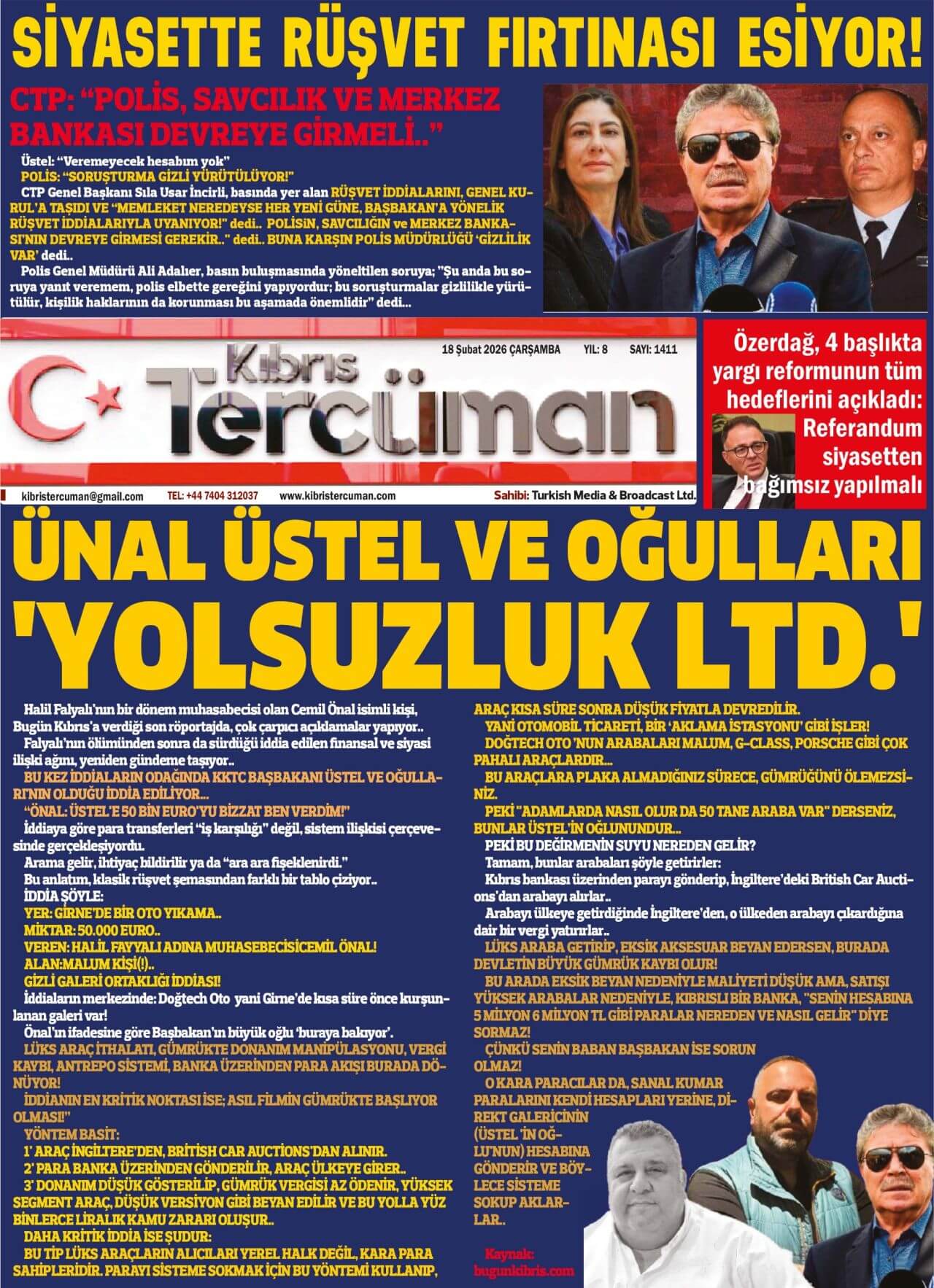 KKTC-TC Gazetelerinde Bugün (18 ŞUBAT 2026)